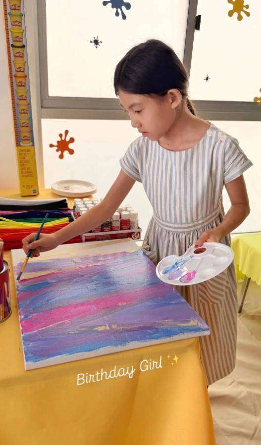 在Alaia生日的当天,姑姑还特意分享了一张她画画时的照片。照片中,Alaia扎着整齐的马尾辫,穿着一条条纹连衣裙👗,修长的手臂让她看起来非常优雅。那一侧的脸庞几乎可以与妈妈秦舒培的年轻模样重叠,气质上也完全继承了妈妈的风韵,简直就是一个小小的秦舒培。从小,Alaia便受到爸爸妈妈的细心培养,不仅坚持练琴,也从小就热衷于画画。尽管她的画风依然稚嫩,但色彩搭配却显示出了她独特的艺术感,整体看起来十分和谐。
