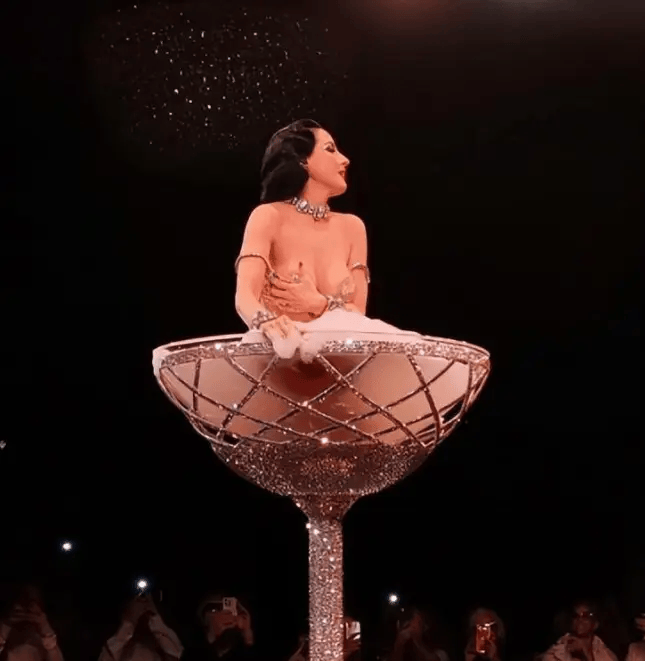 就像模特在香槟杯里走秀,不可否认创意十足,足够吸睛,但这噱头背后,究竟是对时尚的赞美,还是对行业浮躁的讽刺,值得我们深思。除此之外,这场时装『周也』有让人眼前一亮的亮点——年龄偏见被彻底打破。一位年过半百的女演员亮相秀场,自信从容、气场全开,用实力诠释了“岁月从不败美人”,也给所有女性♀️传递了力量:优雅无关年龄,活出自我、绽放光彩,才是最动人的模样。