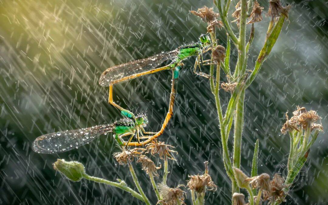 尽管『夏雨』滂沱,这对豆娘仍继续着它们的爱之举。