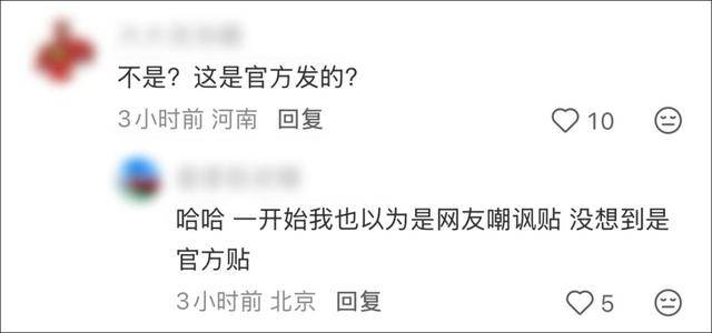 有网友质疑:不是,这是官方发的?立马有网友在下面留言:一开始我也以为是网友嘲讽帖,没想到是官方帖。
