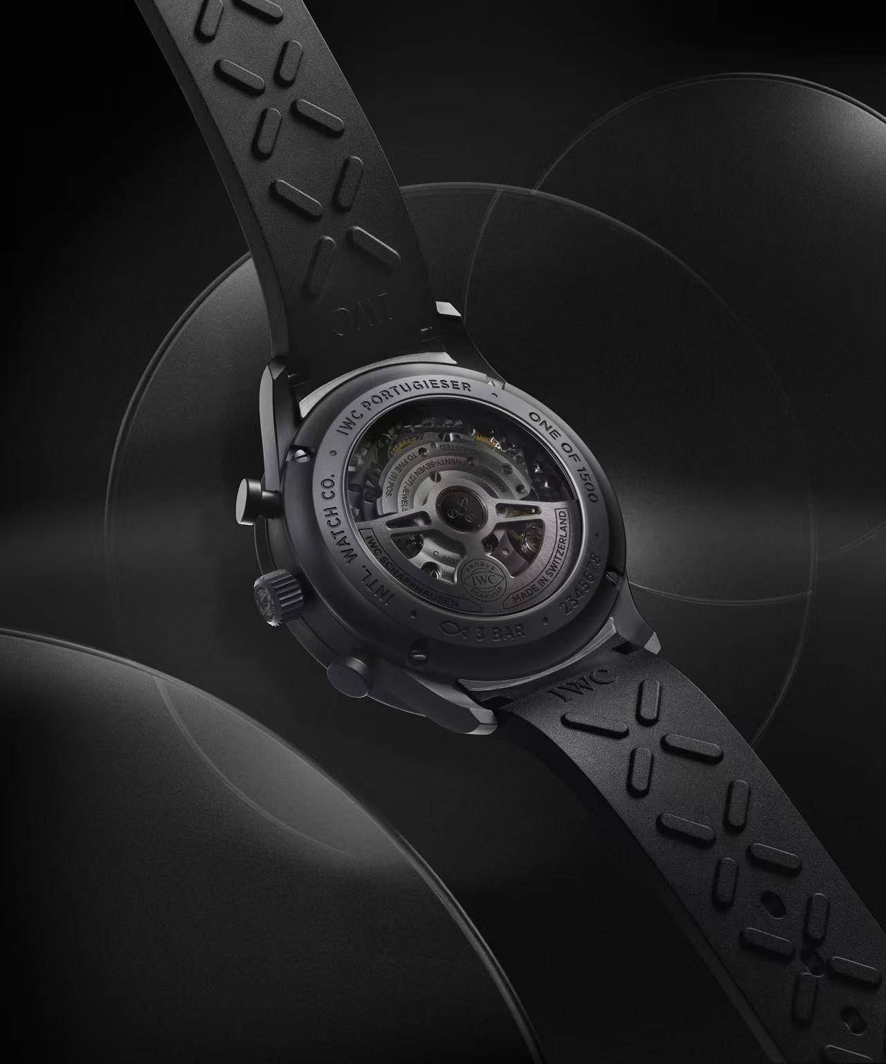 葡萄牙系列计时腕表Ceratanium®瓷化钛金属特别版(型号:IW371631)『限量发售』1,500枚,其41毫米表壳、表冠和按钮均以Ceratanium®瓷化钛金属打造。这一先进材质由IWC万国表自主研发,由特殊钛合金经窑炉高温烧制制成,如钛金属般轻盈坚固,亦如陶瓷般坚硬防刮。Ceratanium®瓷化钛金属的另一大特点在于其独特的深黑色金属光泽。Ceratanium®瓷化钛金属的深黑色搭配黑色表盘、黑色镶贴时标及黑色指针,将这款计时腕表的全黑设计理念贯彻得淋漓尽致。镶贴的阿拉伯数字、时标以及四分之一秒刻度在黑色表盘上形成微妙凸起,营造出精致的层次。黑色橡胶表带饰以方形纹路,与腕表构成浑然一体的全黑视觉效果。