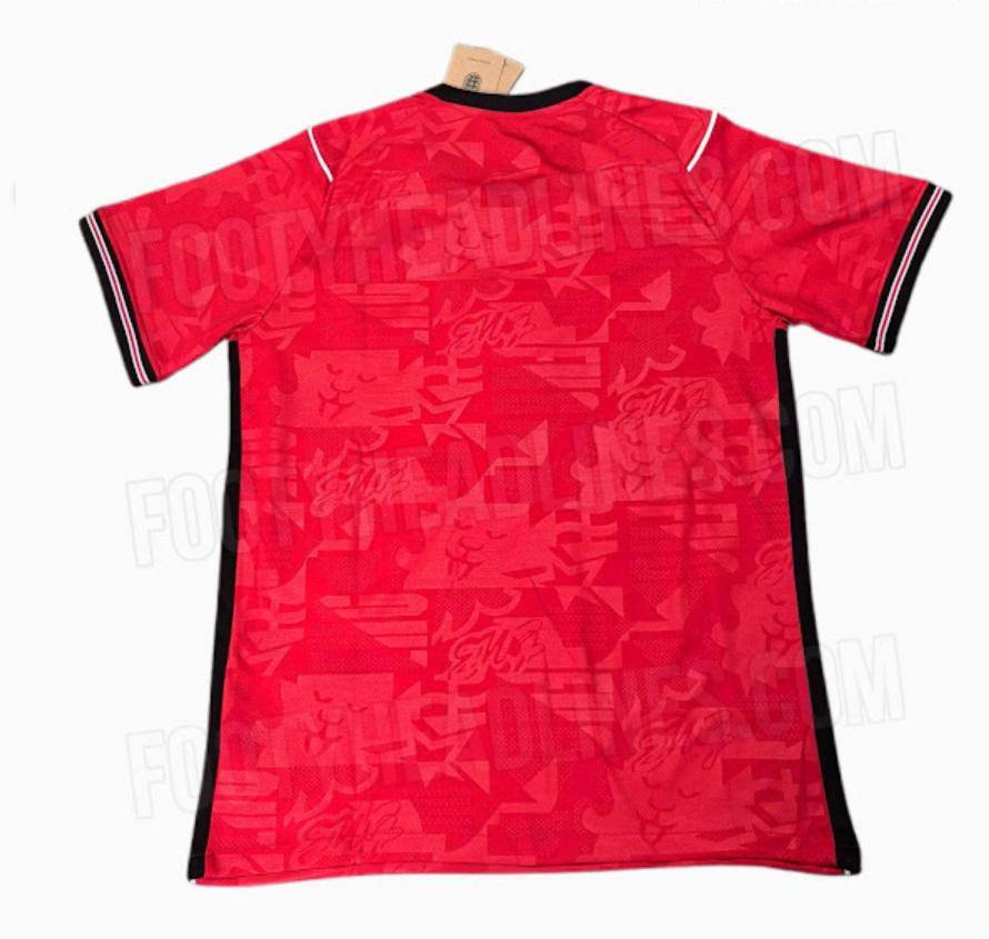客场球衣将与海军蓝短裤🩳和红色球袜完美搭配。海军蓝短裤🩳延续了球衣上的狮子图案,而球袜则采用了与袖口相呼应的条纹细节。