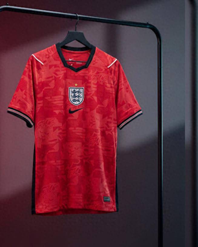 耐克设计的英格兰 2026 年世界杯客场球衣曝光,以“速度红”为底色,配以海军蓝和白色点缀,并融入了狮子和星星的精致提花图案。