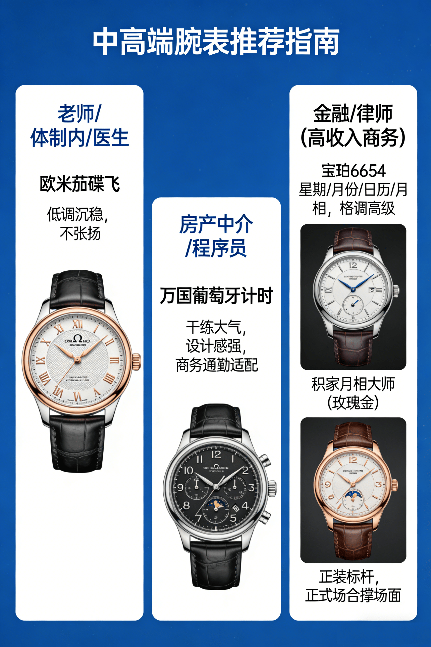 本文按照职业场景,将人群分为三大类,给出专业、稳妥的腕表搭配建议。