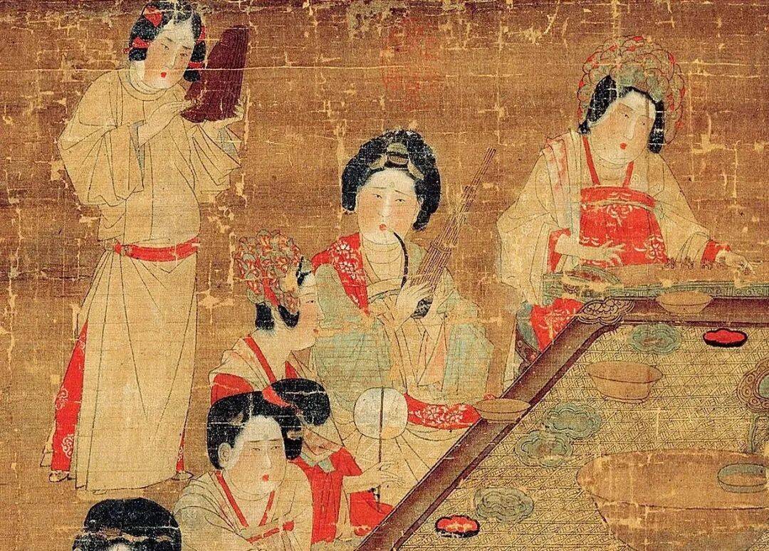 唐代佚名《宫乐图》中贵妇施桃花妆