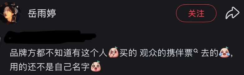隐隐约约懂了为什么网红蹭秀都能进场,偏偏岳雨婷进不去了,在岳雨婷的高调操作下,如果品牌没有任何动作是会影响自身调性的,以后说出去都是请短剧演员看秀的牌子了。