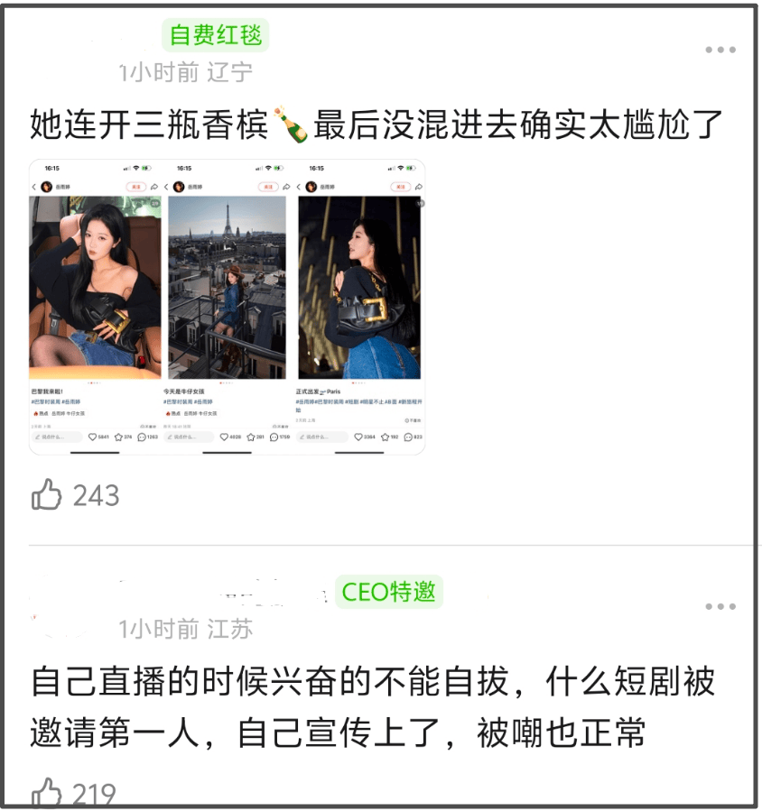 随后还有其他知情人出面补充,表示岳雨婷的衣服都是自己买的,并非品牌提供,被第一场大秀品牌除名之后,他们又想办法买通了一位『明星』️造型师,不出意外,应该是可以进场看秀了,至于花费金额,大概是30万?