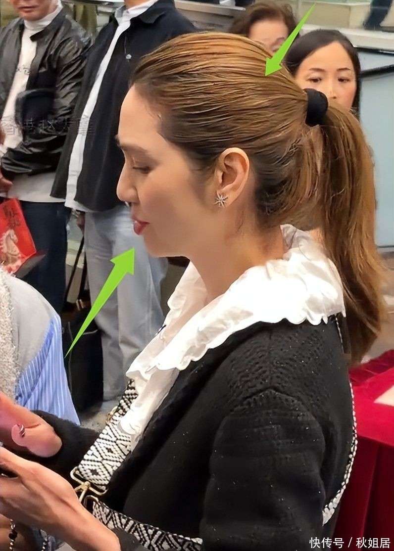 照片中的她,侧脸线条有些紧绷,轮廓呈现出轻微的前突感。随着年龄的增长,胶原蛋白流失,皮肤的支撑力逐渐减弱,松弛感也在光影下愈加明显。再看看她头发中那抹亮眼的金色发丝,发根处悄然渗出几缕银白,特别是在阳光下显得格外醒目,仿佛岁月温柔地在她发丝间写下的标记。
