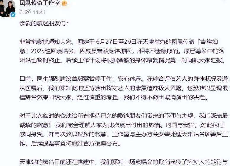 舆论的审判迅速转化为实际的损失,仿佛多米诺效应,一触即发。凤凰传奇工作室在风波发酵一周后发布公告,宣布因曾毅身体原因需要休养,取消了原定于下半年的三场大型巡回演唱会。公告的措辞看似审慎,却难掩其中的无奈。据行业数据统计,这三场演唱会的票务收入原本已超百万张,票源几乎早已售罄。单单退款一项,已造成的直接经济损失便超过千万人民币。这对正处于事业第二春的凤凰传奇而言,无疑是一次沉重的打击。曾经,他们在鸟巢的演唱会门票一分钟内即告售罄,而吉祥如意巡回演唱会的门票也常常供不应求,台州站的83.1万标记想看足以证明他们曾有过巨大的市场号召力。然而,现在的他们却成了风险的代名词,商业代言、综艺节目邀约全面停滞,晚会舞台对他们已经紧闭大门。曾经屡次成为中秋、国庆晚会焦点的凤凰传奇,在2025年的中秋晚会名单中彻底消失。