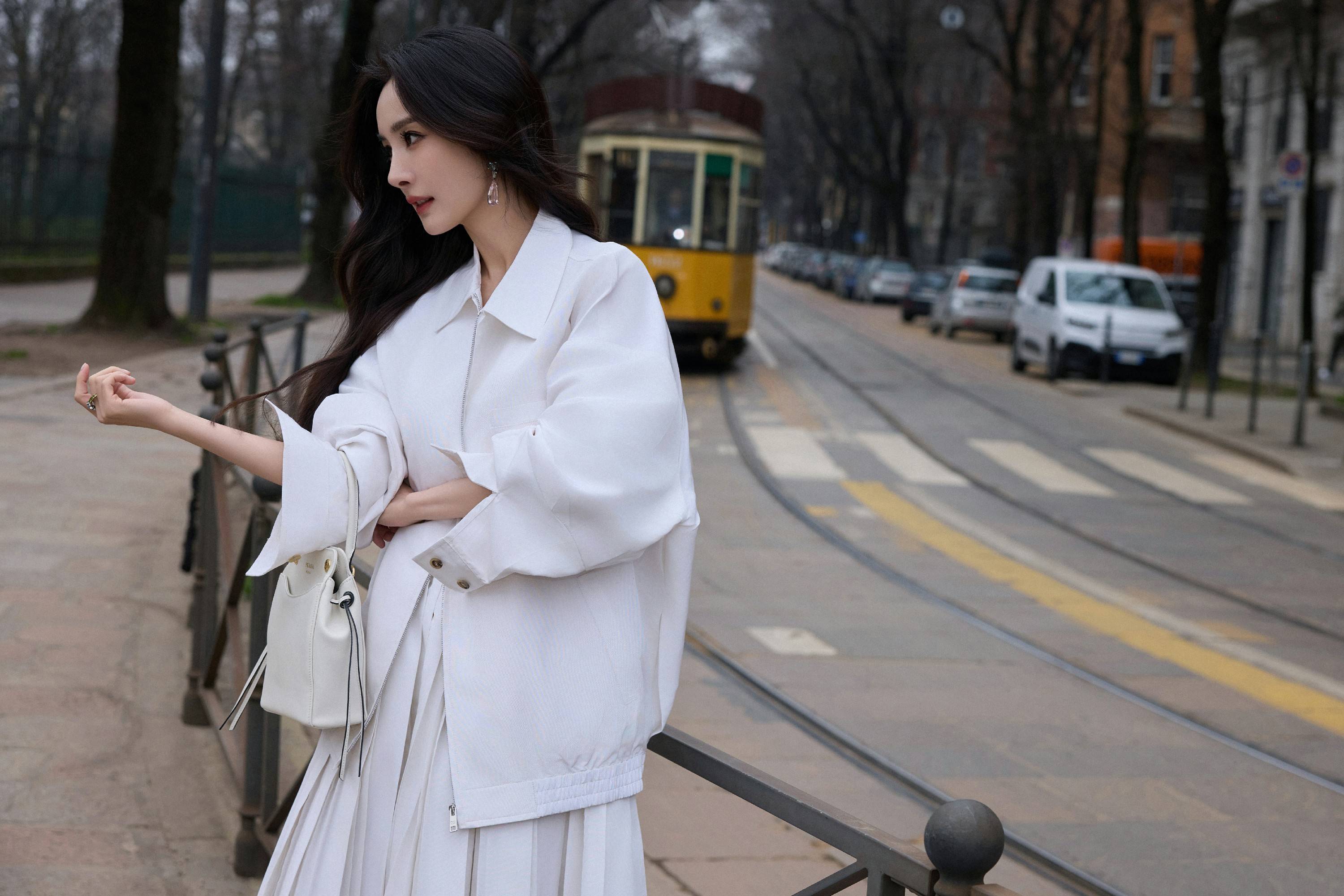 米兰『时装周』,『杨幂』全球首穿Prada 2026“Days of Summer”夏日系列纯白套装,这套尚未发布的超季款式,在2月的秋冬秀场提前亮相,意味着品牌将最高级别特权赋予了她——时尚圈称之为“超季未发布全球首穿”。搭配Couleur Vivante系列珠宝与Carry白色迷你手袋👝,极简中见精致,意式美学与东方气韵在她身上自然融合。