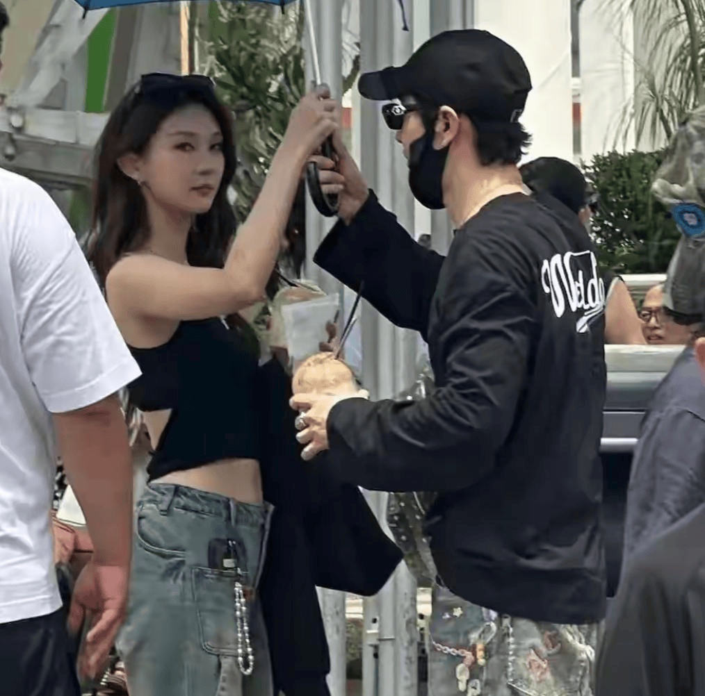 那天天气挺热,48岁的『黄晓明』一身黑,帽子墨镜🕶️捂得严严实实。可身边那个穿黑色露脐装的女孩实在太抢眼,想不被注意都难。两人从上到下的『穿搭』明显是情侣款,『黄晓明』全程给姑娘打伞,自己半个肩膀晒着也顾不上。买水买零食更是寸步不离,有网友说看到他们在伞下牵着手,亲密得很。