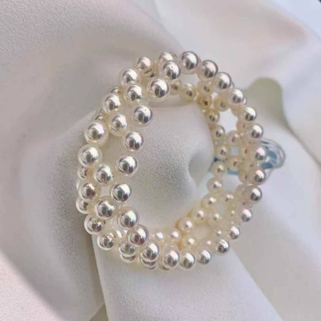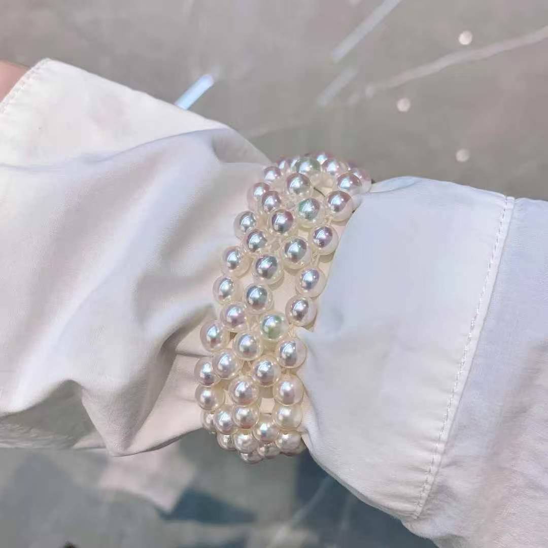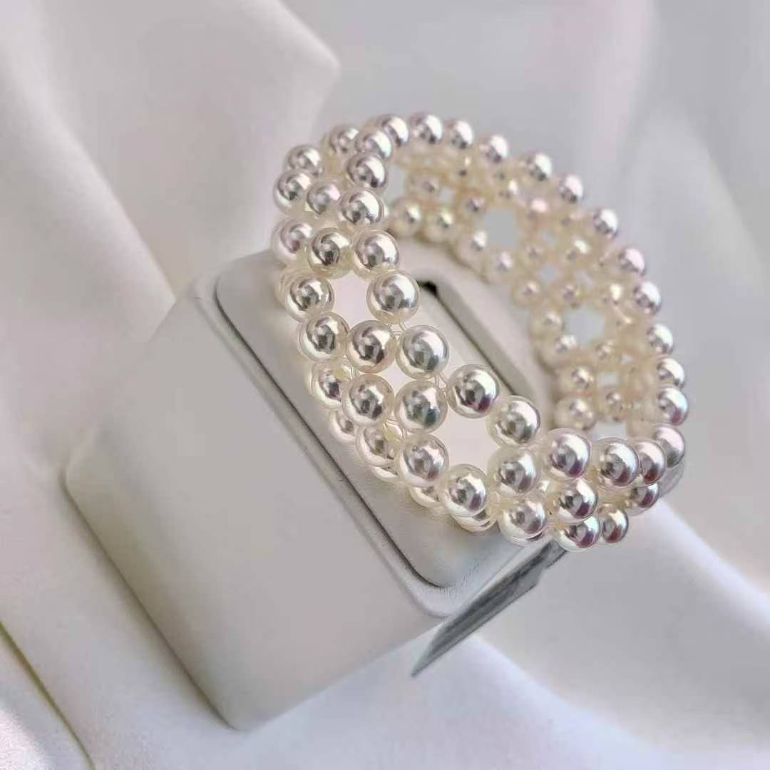 独一无二的美镯哦……6-6.5mm 正圆 ,akoya珠子,颗颗天女光!纯手工编织 ,非常精致