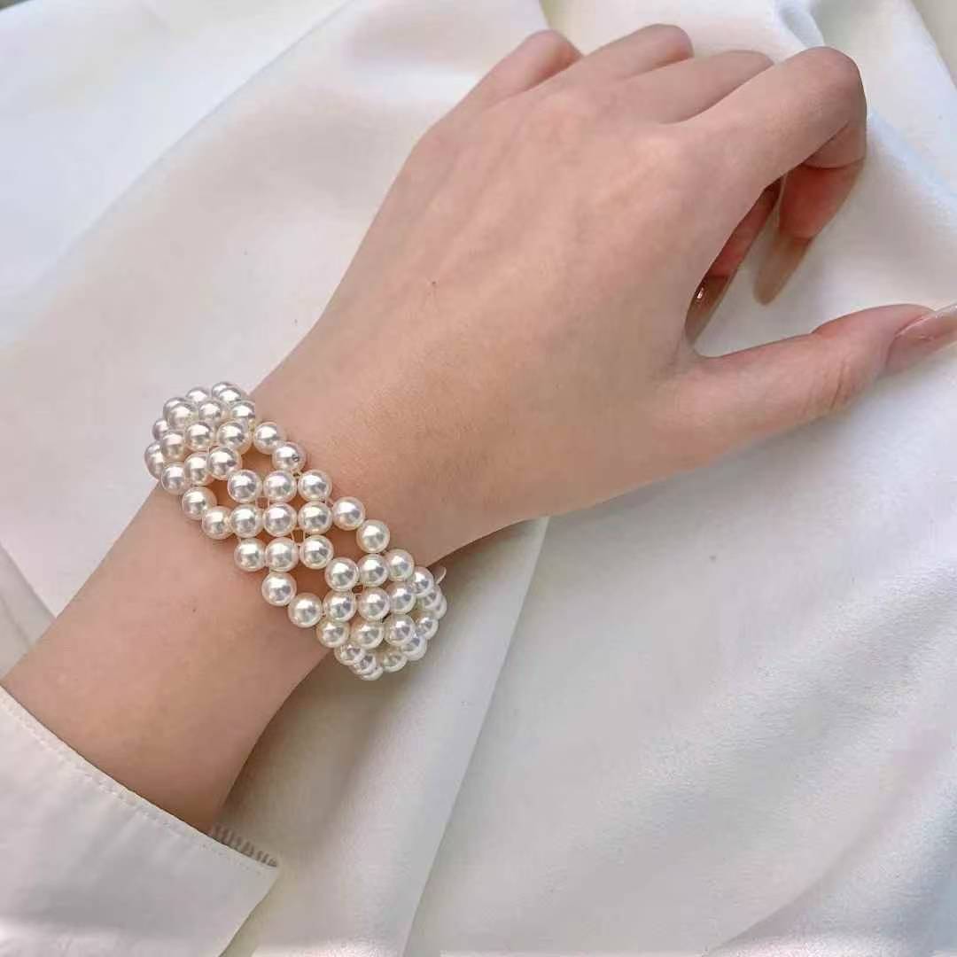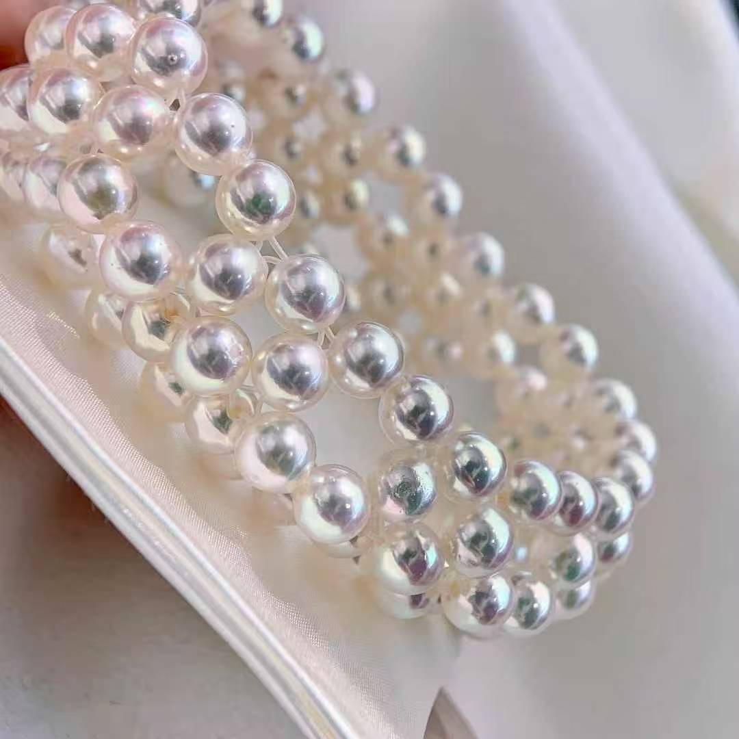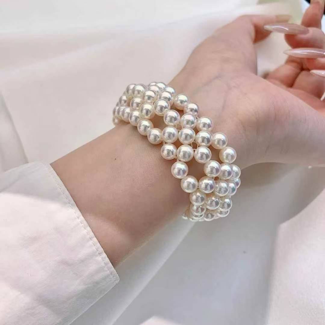 独一无二的美镯哦……6-6.5mm 正圆 ,akoya珠子,颗颗天女光!纯手工编织 ,非常精致