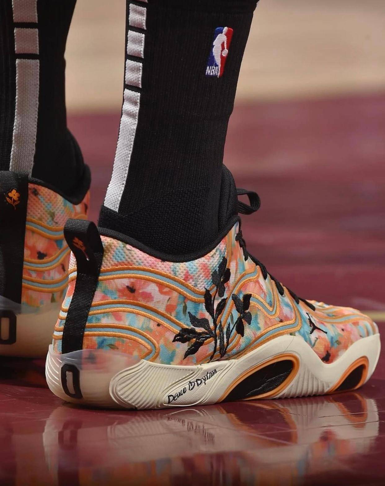 到拿到第一代AJ Tatum的时候,鞋设计往他习惯的“变向 急停干拔”靠,前掌包裹做得紧,后跟稍高一点保护起跳落地。那会刚好是他开始大量练撤步三分的阶段,出手点越来越靠外,整体打法往“持球大核”靠,而不是只当一个大号侧翼终结点。