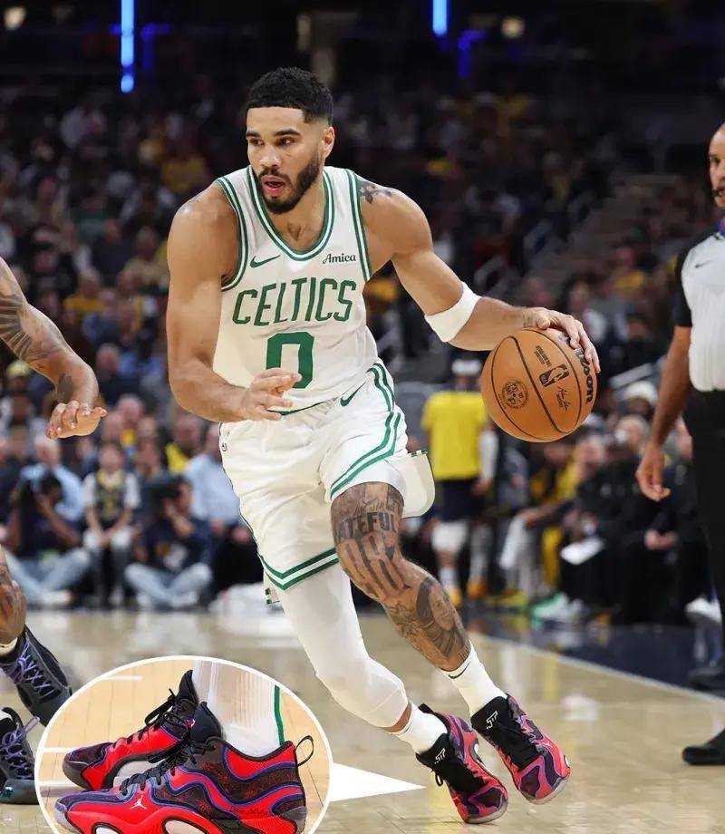 有意思的是,塔图姆的出手选择也在跟着鞋一起变得更“签名化”。早几年你看他,强行单挑、长两分有时候偏多,容易被骂“打铁艺术家”。到了这两年,他的三分占比拉上去,抓住防守换错、小打大的时机更主动,很多回合就是一个简单的上步撤步三分,防守知道他要投,但拿他没太多办法。