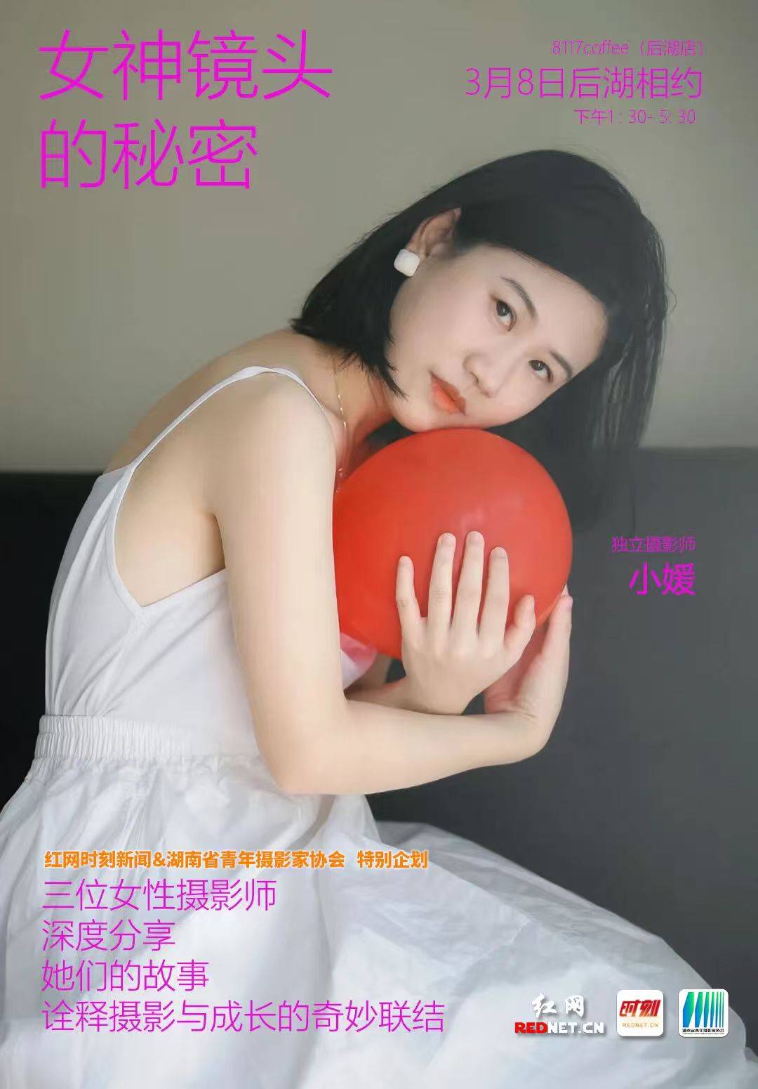 3月8日,红网时刻新闻将携手湖南省青年摄影家协会,在充满艺术气息的长沙后湖文化艺术区8117coffee举办女神节特别活动,以镜头为媒,致敬每一位了不起的“她”。