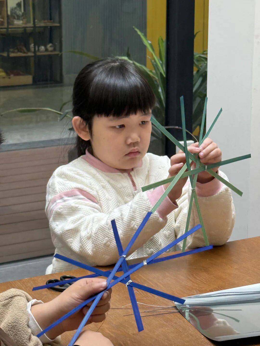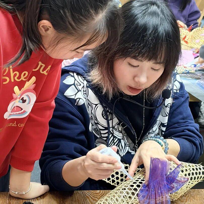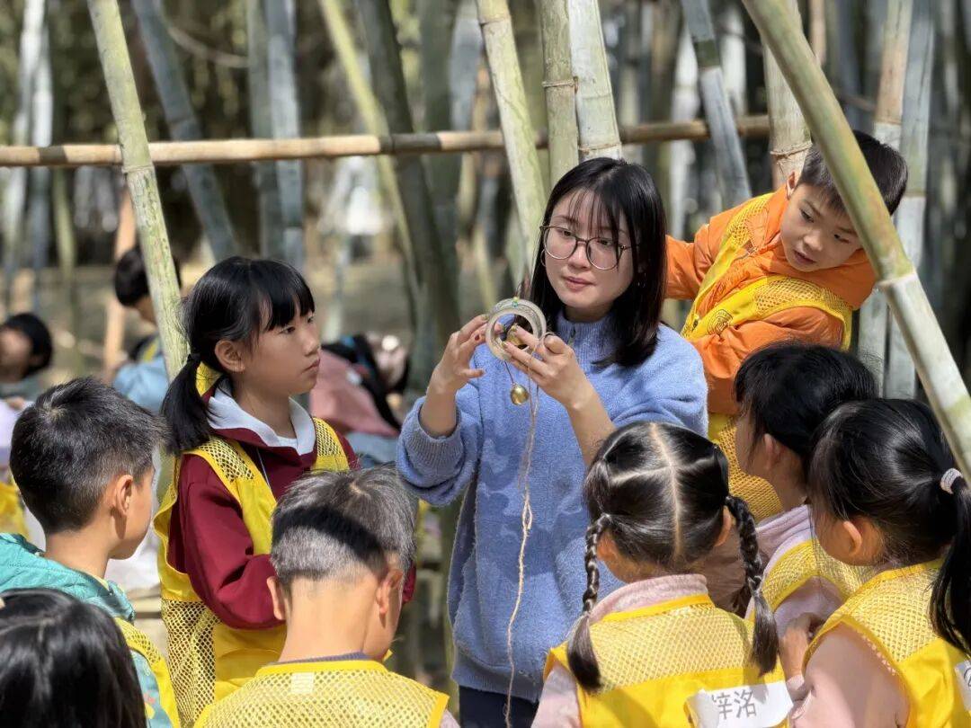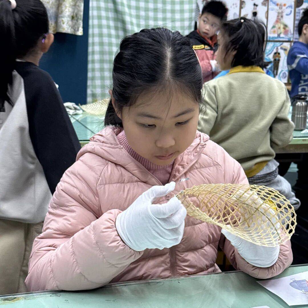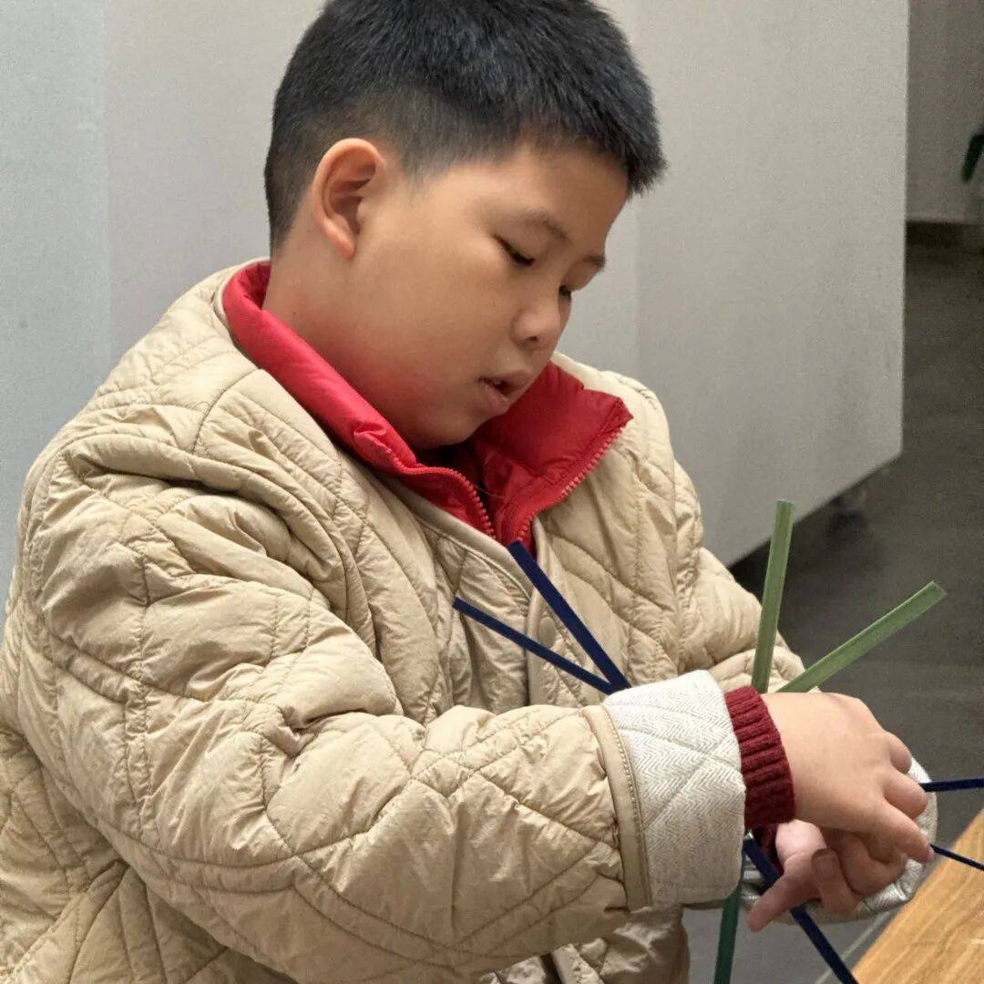 老师教授孩子竹编风车技巧