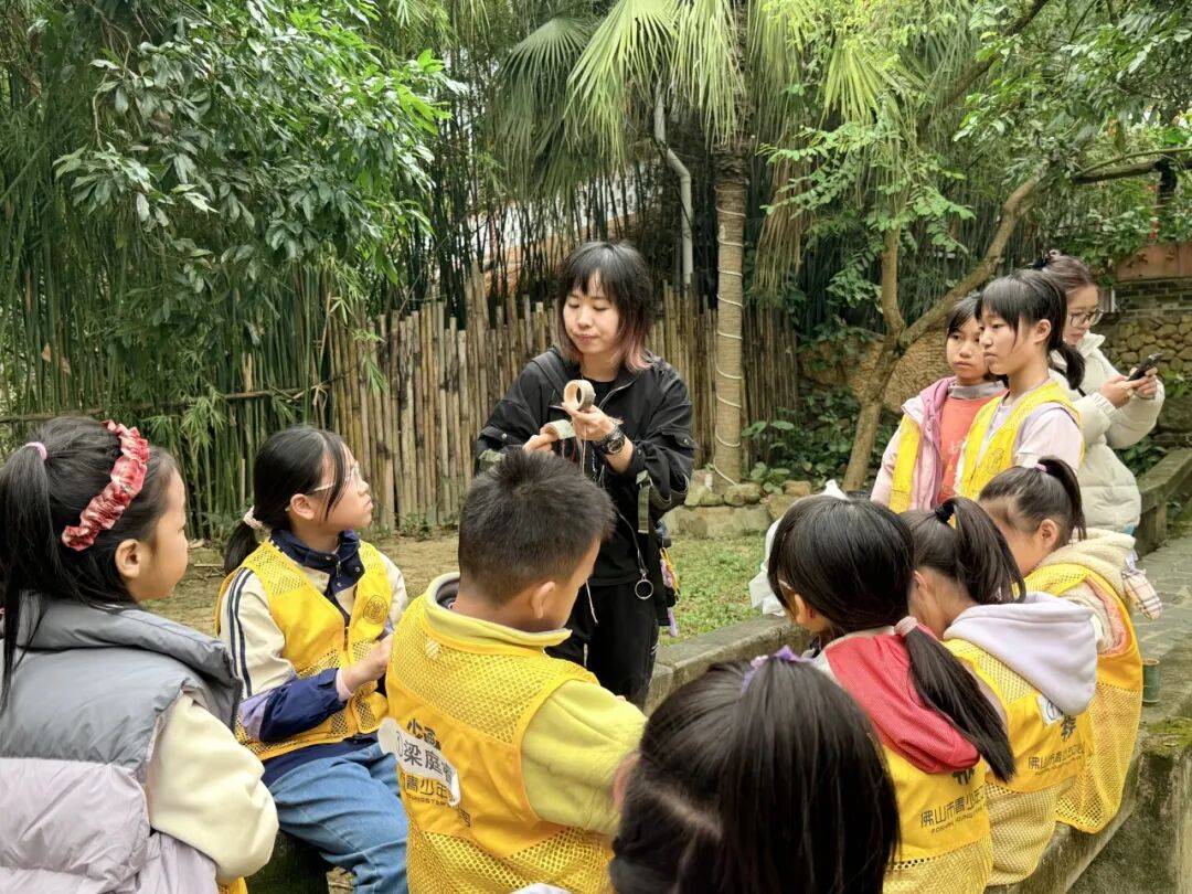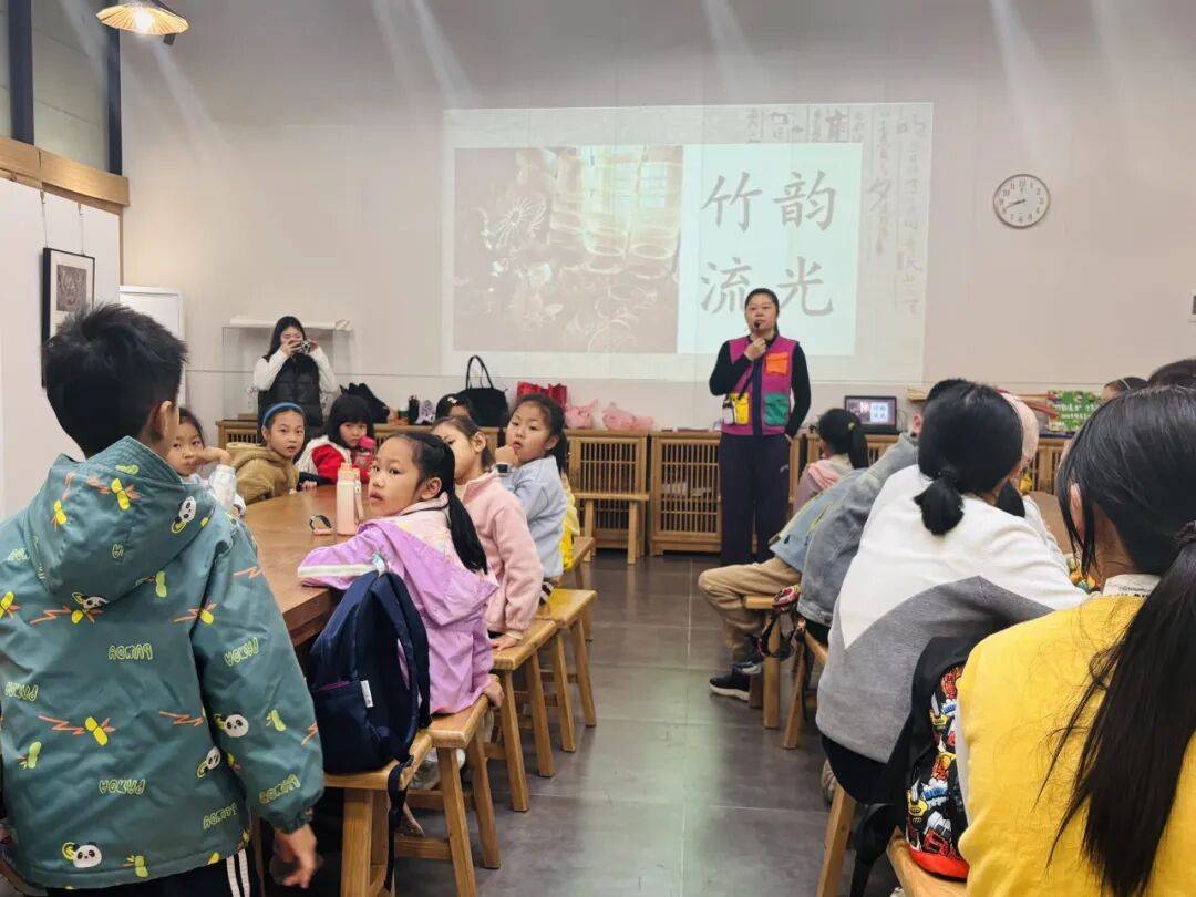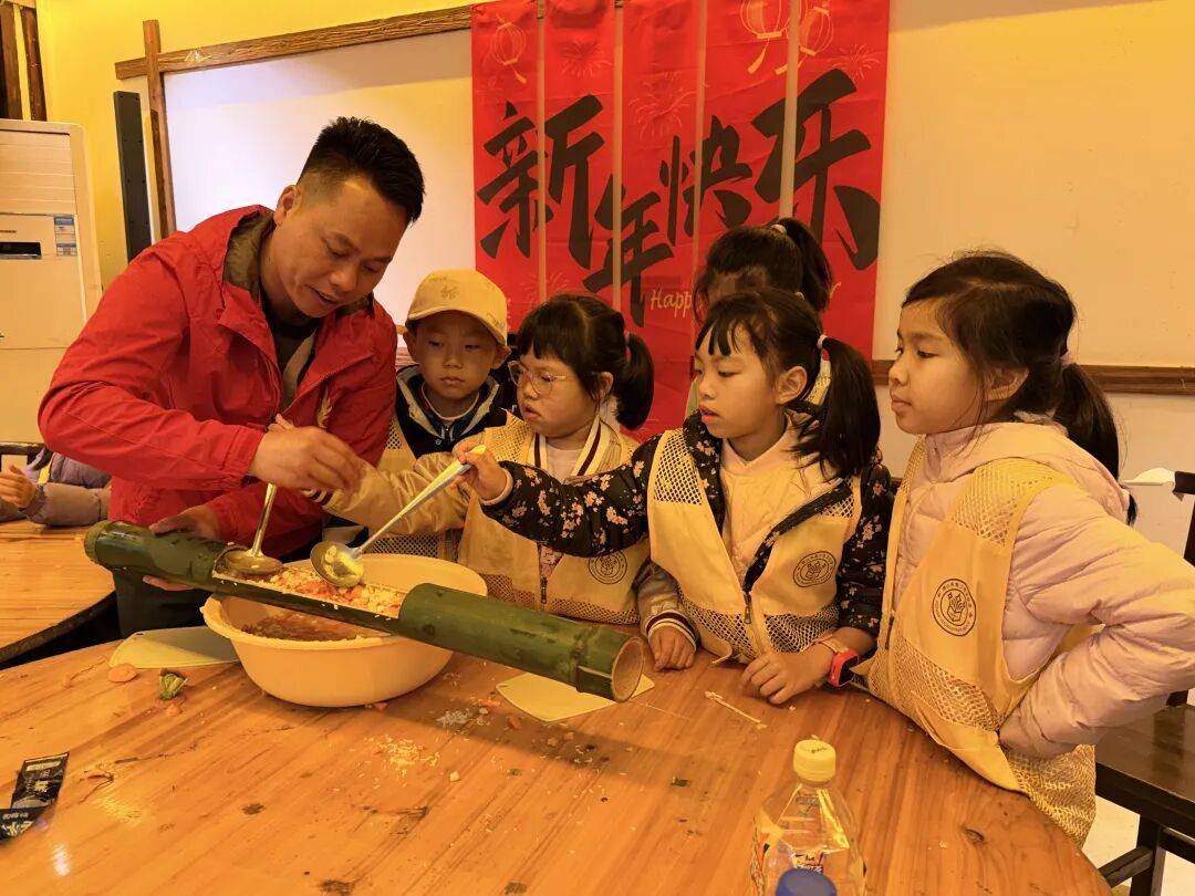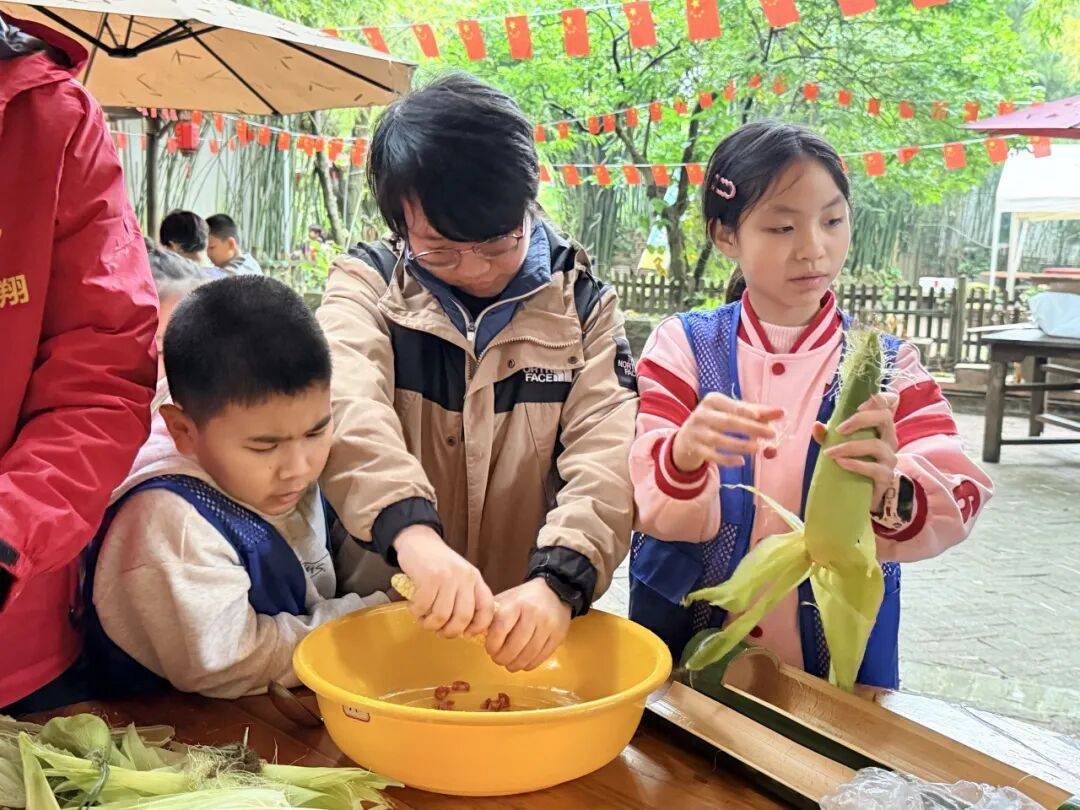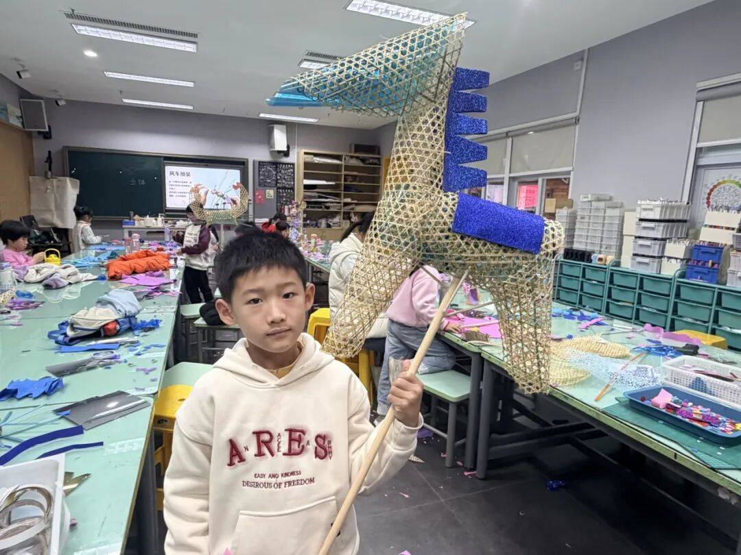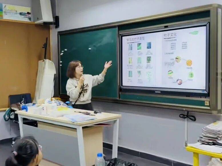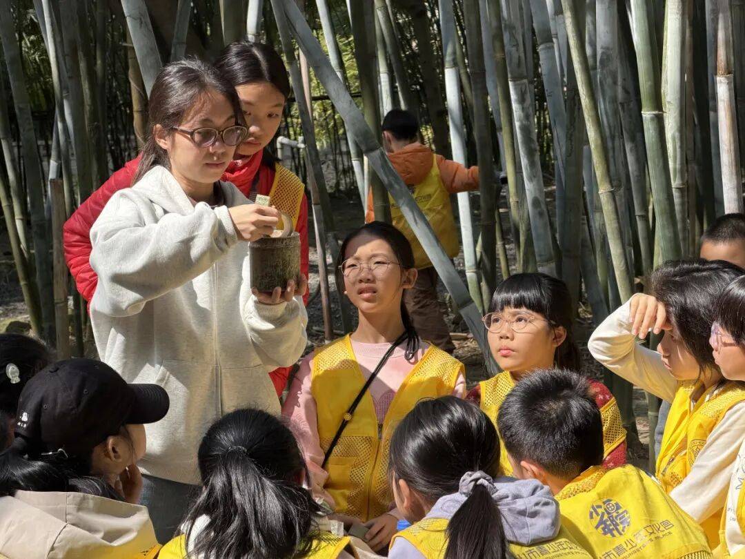 老师教授孩子竹编风车技巧