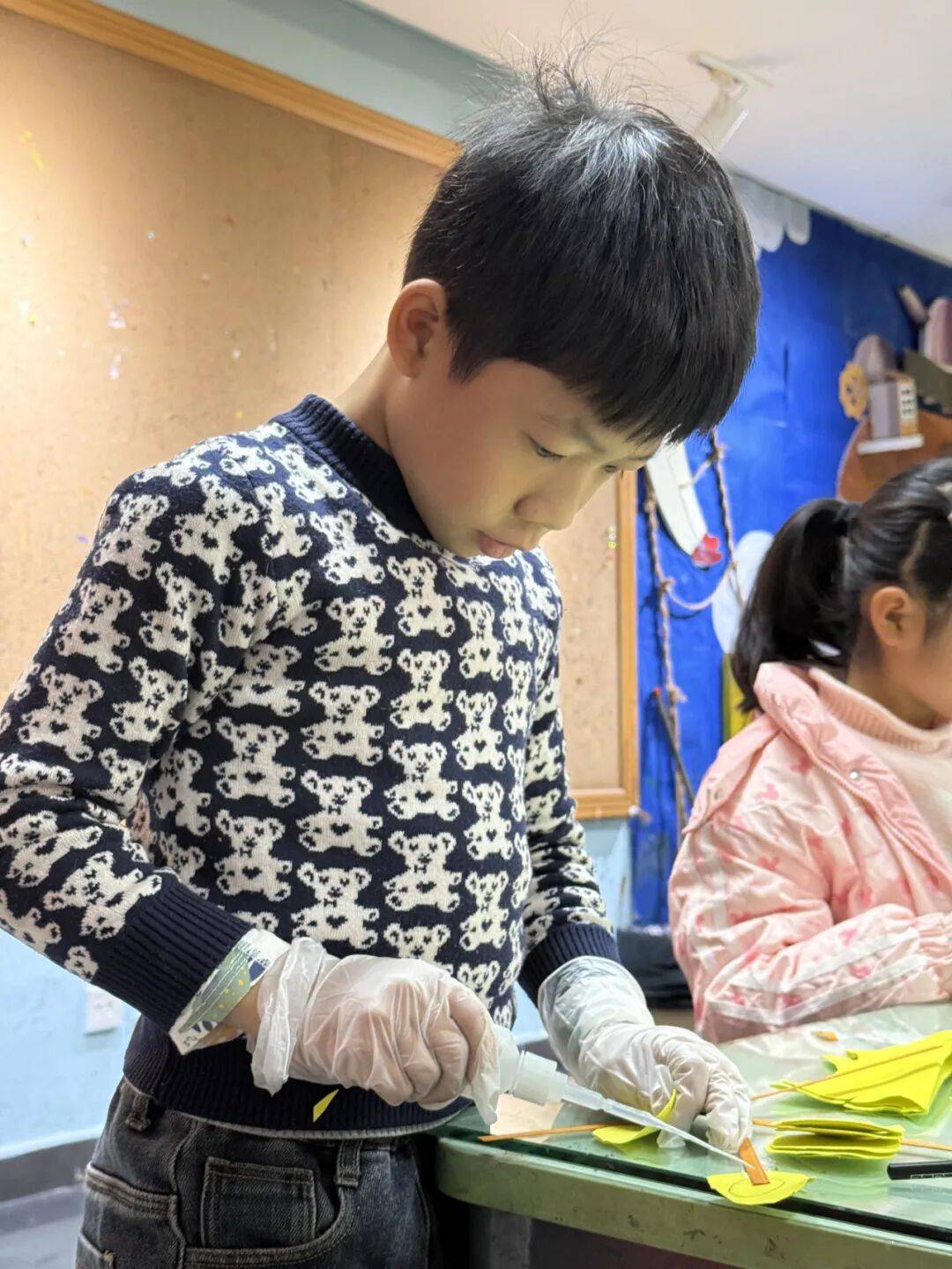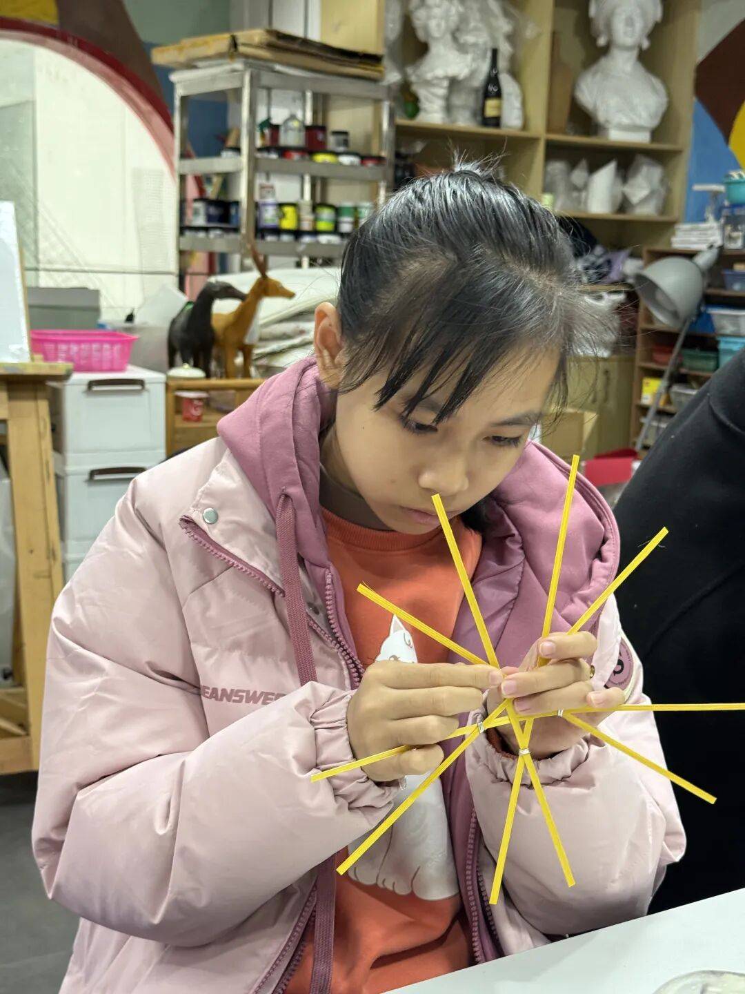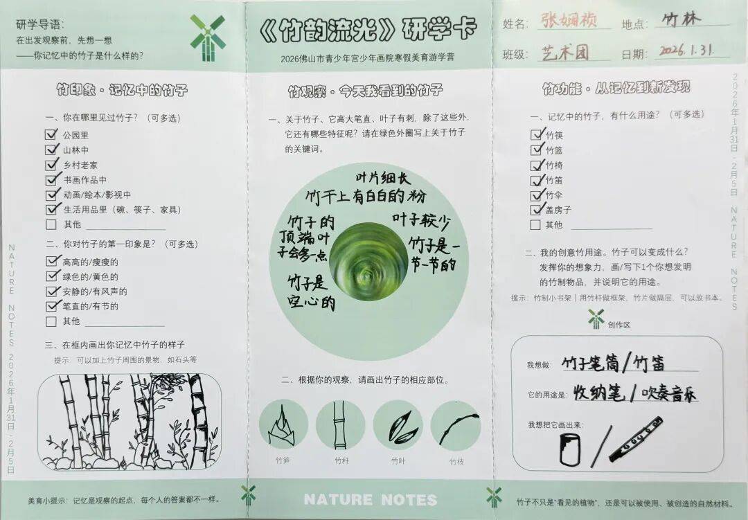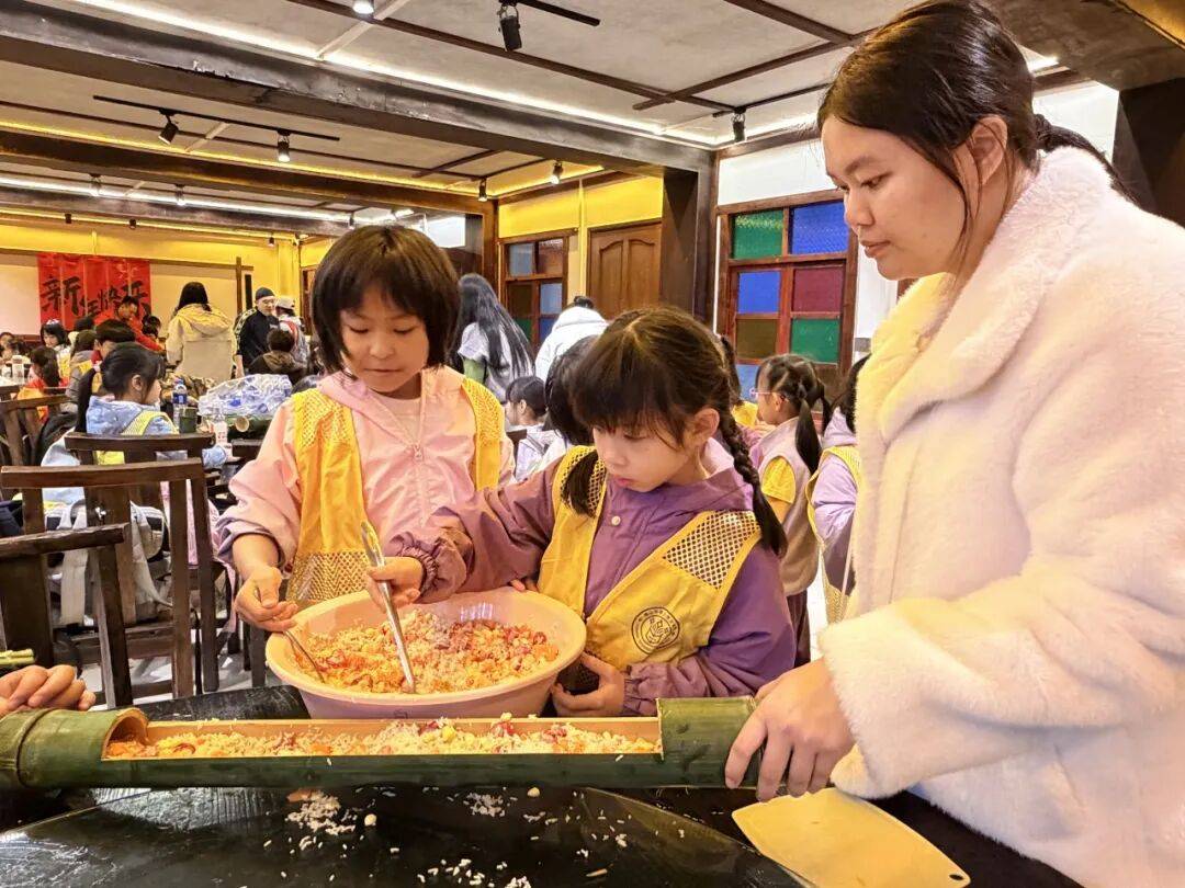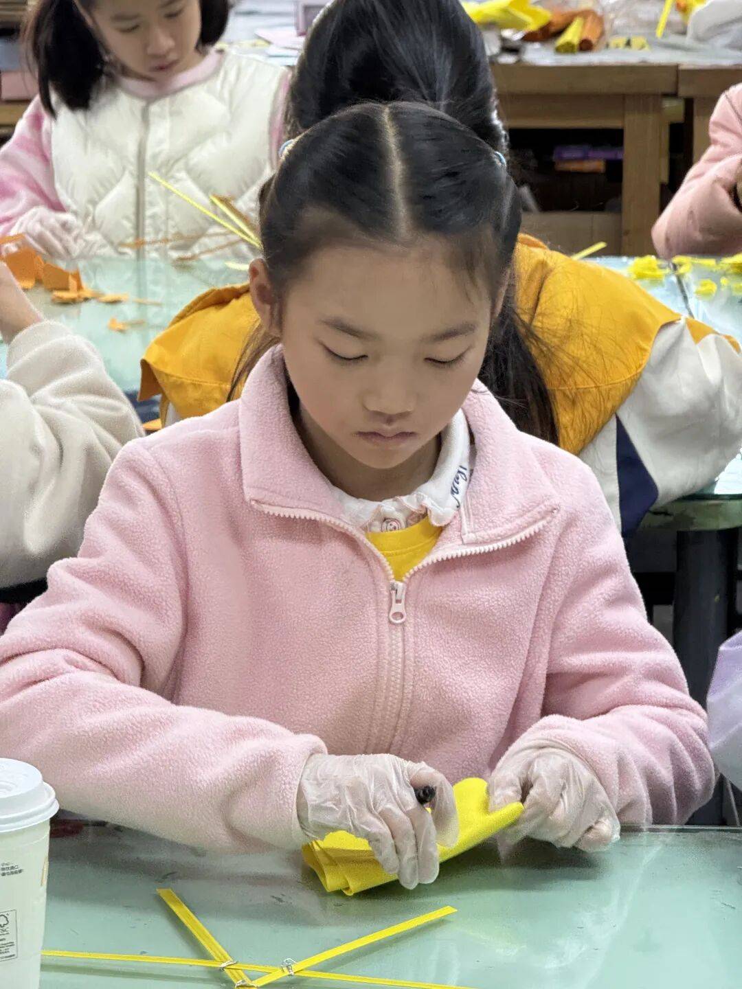 老师教授孩子竹编风车技巧