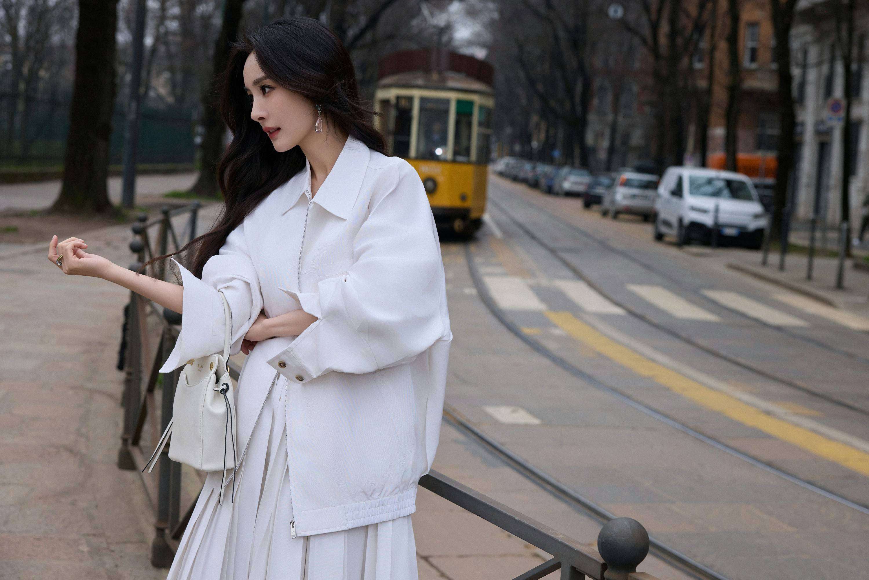 在2026年米兰『时装周』上,『杨幂』成为全球首位穿上Prada2026年Days of Summer夏日系列纯白套装的艺人。该款尚未发布的超季新品,在2月的秋冬秀场提前亮相,这意味着Prada赋予了她品牌最高级别的特权——时尚圈称之为超季未发布全球首穿。她搭配了Couleur Vivante系列珠宝和Carry白色迷你手袋👝,简约而不失精致,意式美学与东方气韵在她身上完美融合。