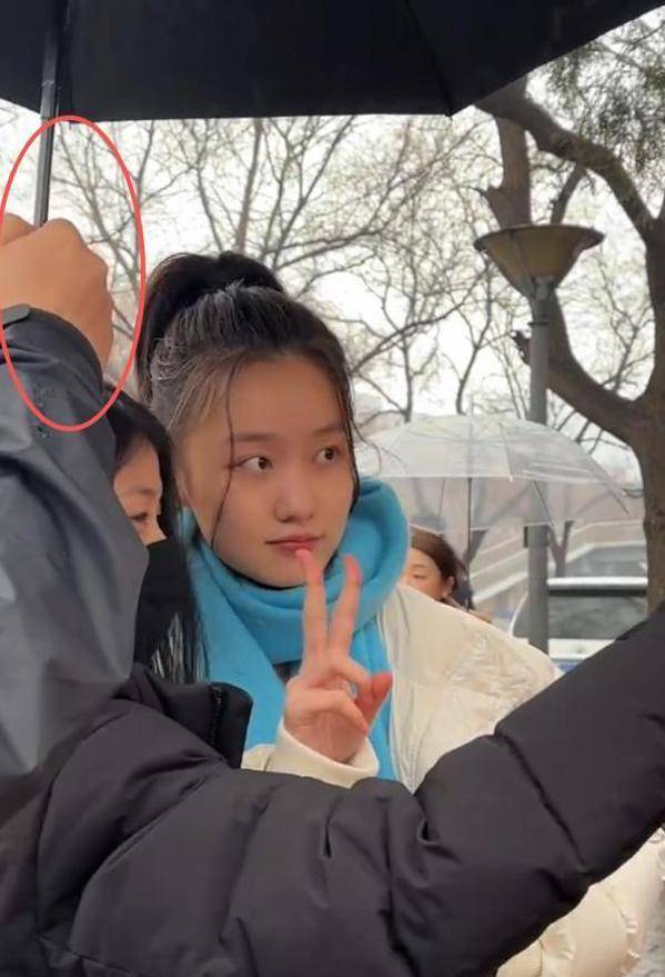 在进入考场前,纪姿含周围的排场颇为隆重。她与身边疑似老师或母亲的女性♀️拍照时,旁边还有一位男性♂️专门负责为两人撑伞。
