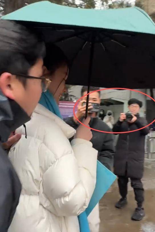 当纪姿含走向考场时,围拍她的人数更是达到三位。一个人用手机记录,还比了一个加油手势。