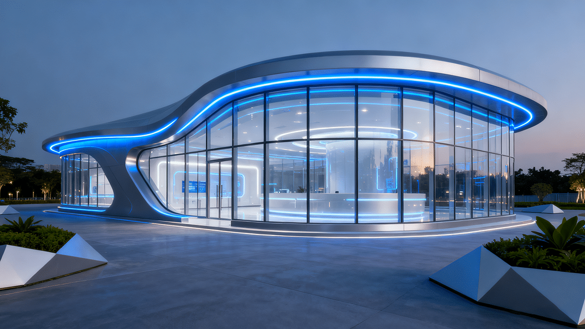 - 亮点:透明OLED展示柜、材料微观结构交互、AI语音导览、极简科技风。