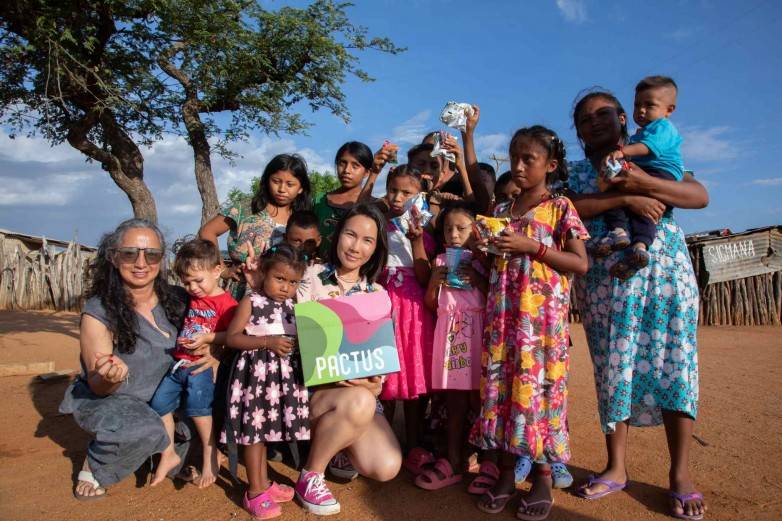 在这种背景下,编织已从传统手艺转变为该族群的主要经济支柱。广州瓦尤文化传播有限公司(瓦尤文化馆)与哥伦比亚领事馆紧密合作,联手发起爱心计划。每售出一个爱心盲盒,其利润将直接资助一个瓦尤家庭一个月的基本生活费(约100美元💵)。这种模式实现了非遗技艺的商业化闭环:通过稳定的订单带动部落女孩学习编织,从而防止技艺失传,同时改善原住民社区的生活与教育条件。