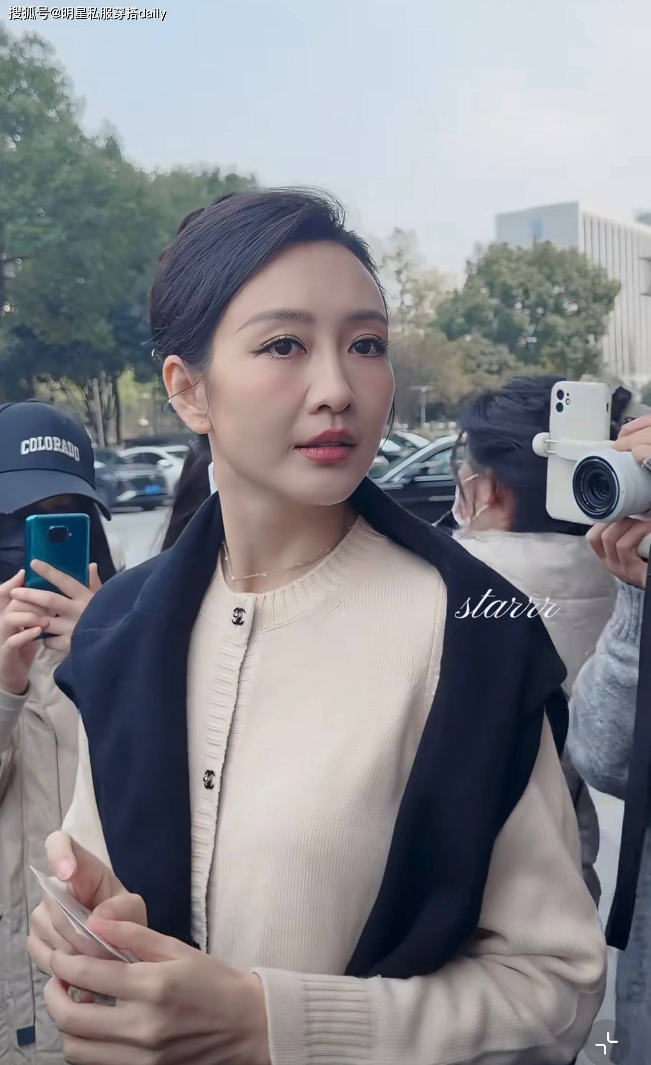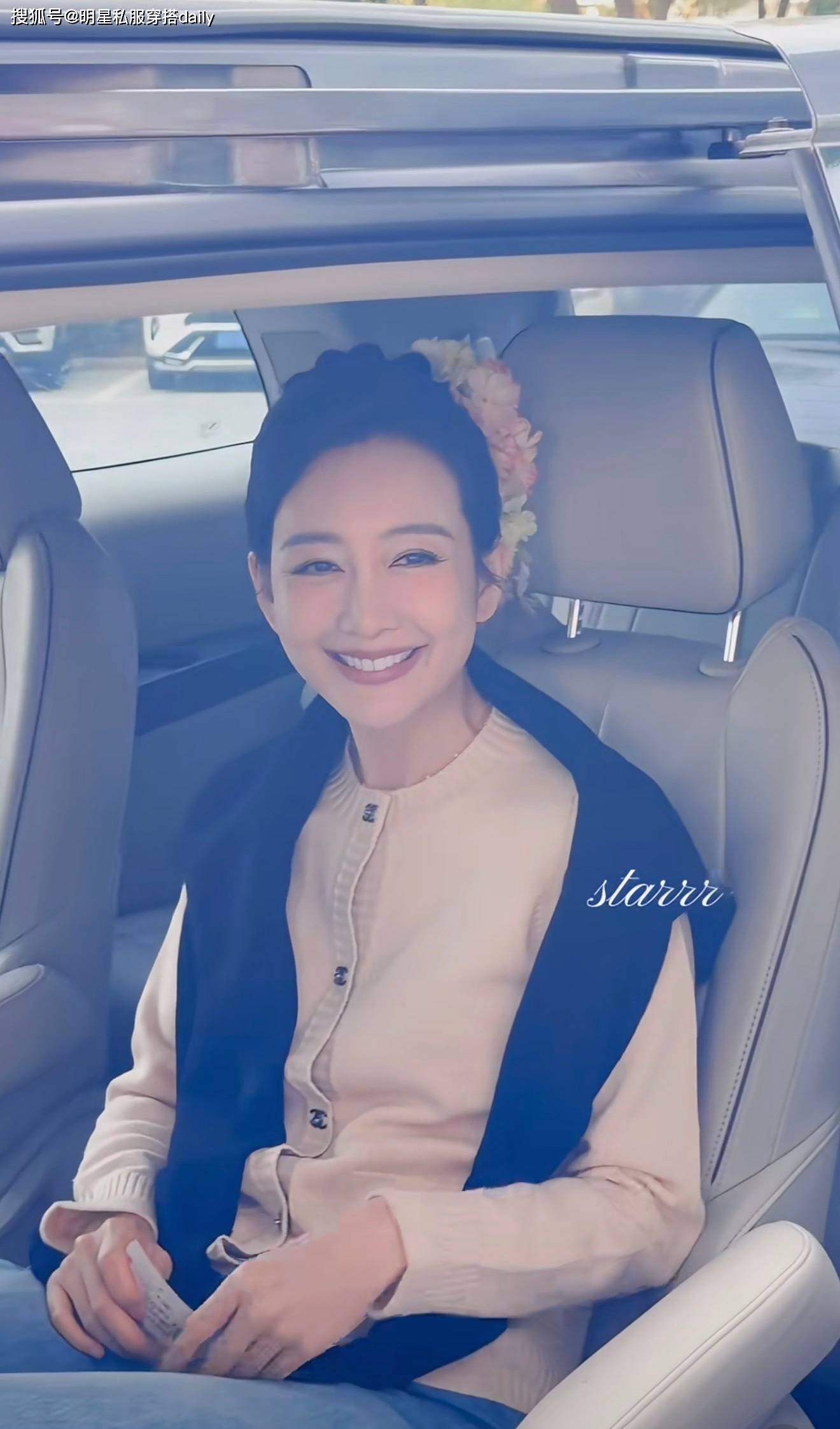 『王鸥』“鬓间簪花”美到炸街!穿小香风『针织衫』温柔显白,状态真抗打
