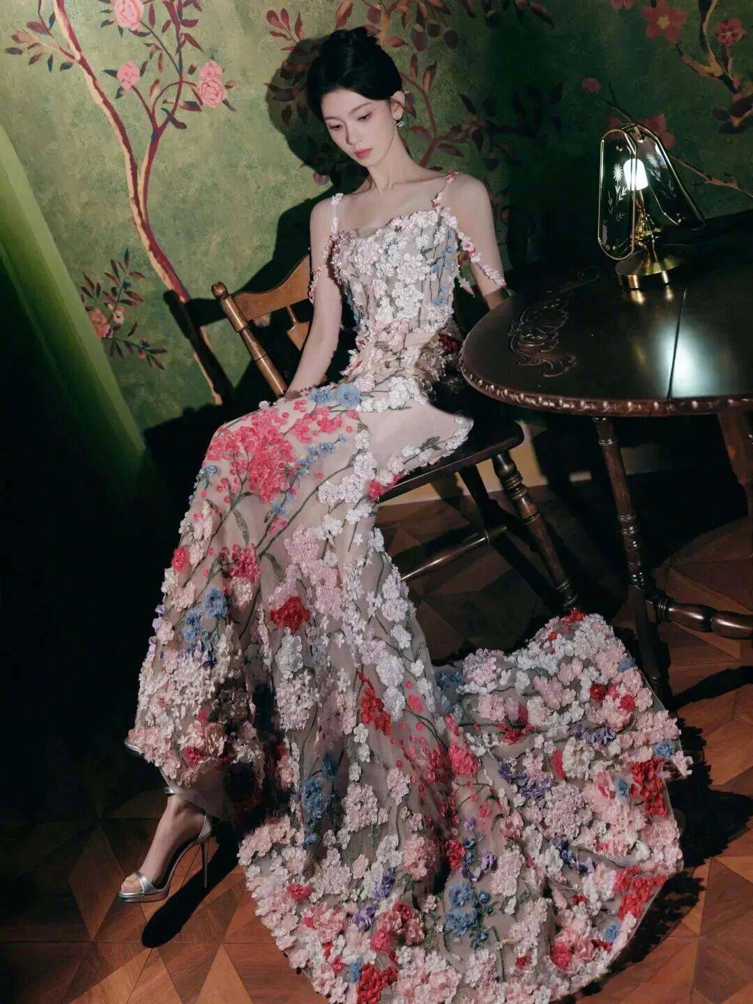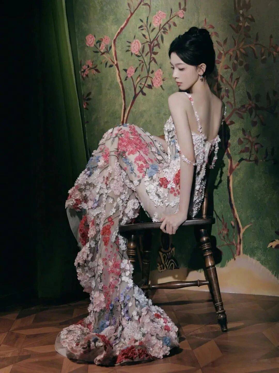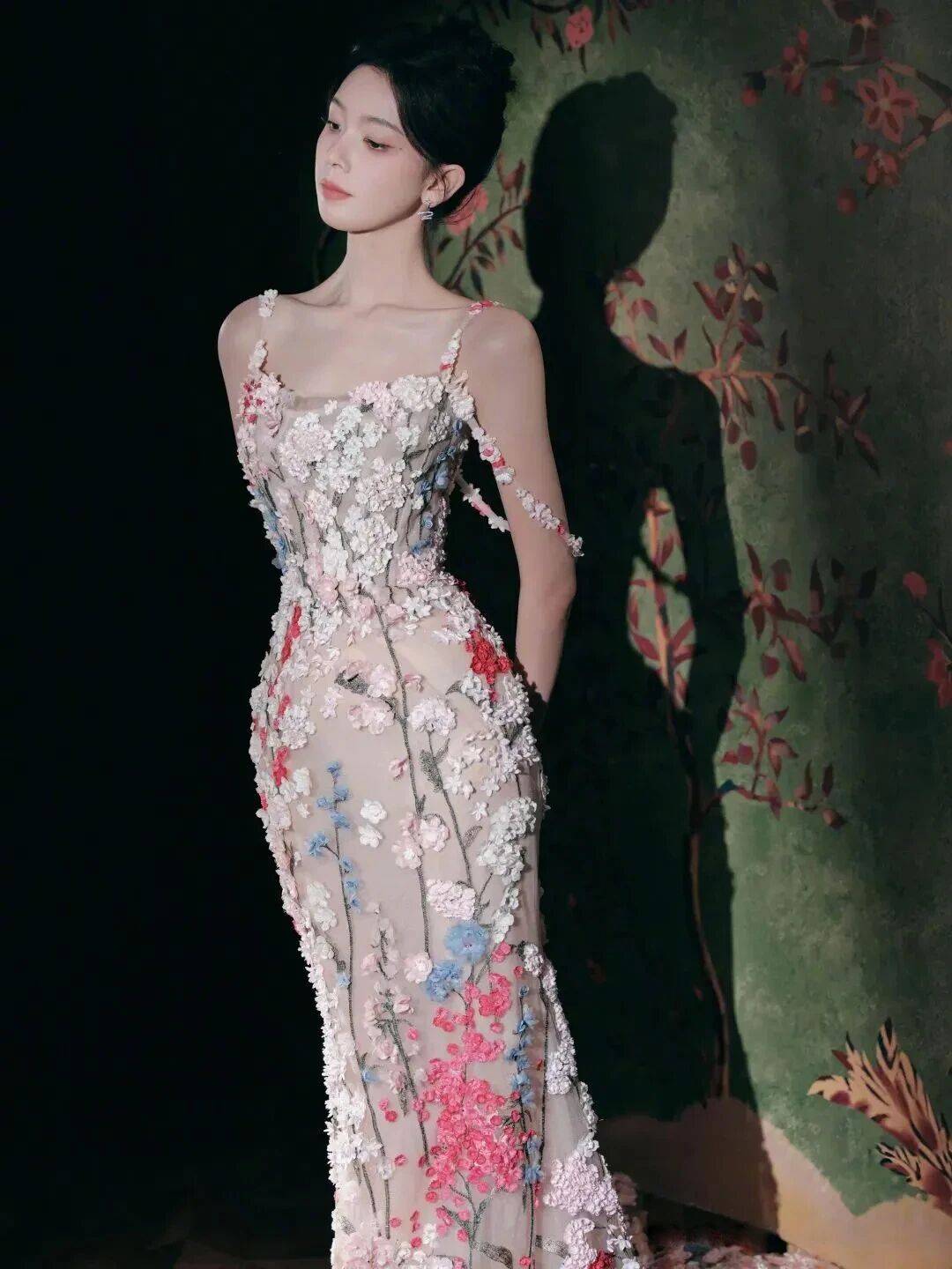 陈瑶身着一袭桃花刺绣长裙👗亮相,真可谓是把“一树桃花”穿在了身上。淡雅的裸粉色裙身为底,上面盛开着错落有致的立体桃花刺绣,从肩头蔓延至裙摆,仿佛将整个春天都披在了肩头。她静静地站立,人面与桃花相映,清丽脱俗的气质扑面而来,实在是“美爆了”!
