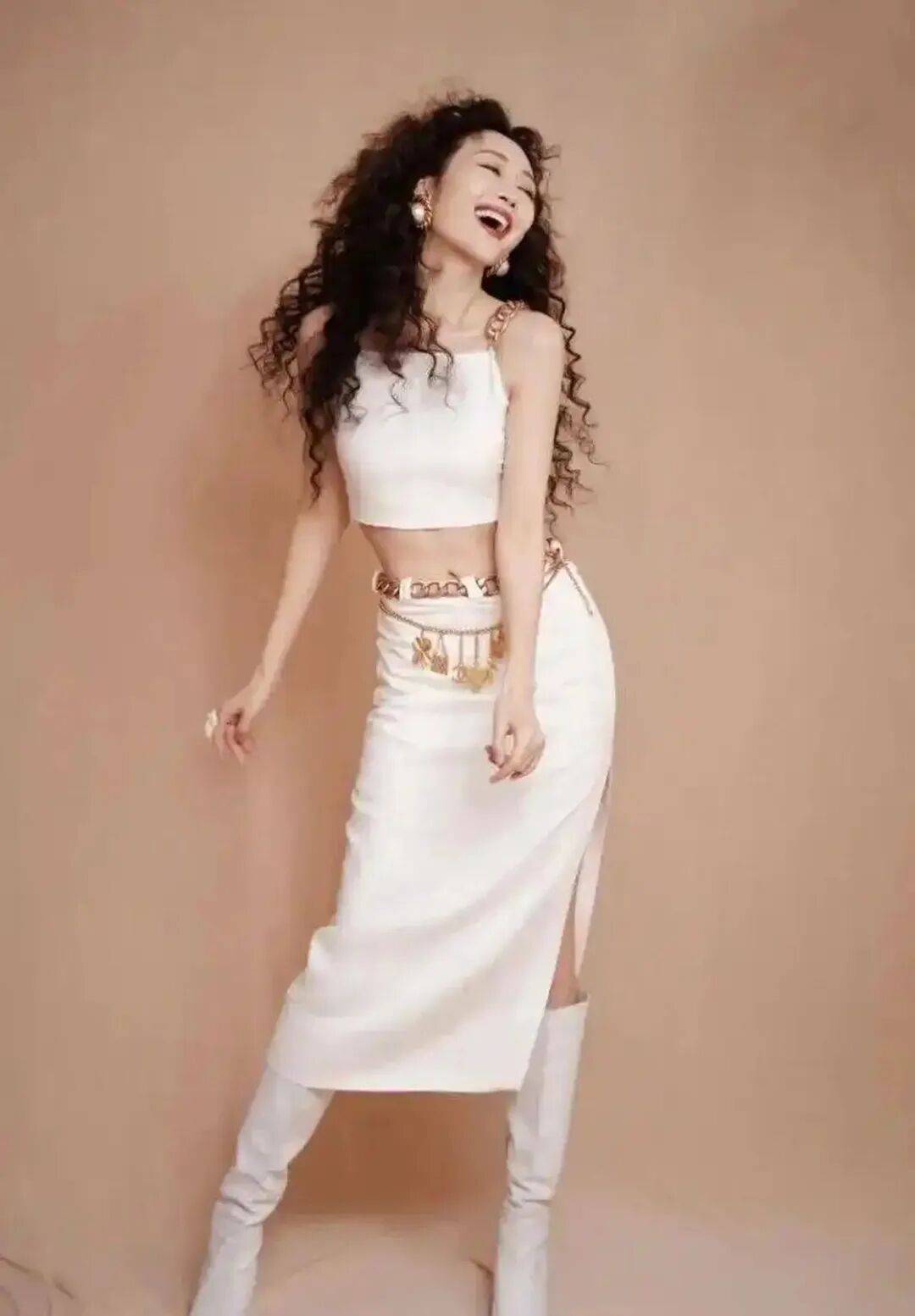 年岁于她,仿佛只是增添了更多变的风格注解。泡面头是慵懒不羁的注脚,而那一截露出的纤腰,则是自律与自信最直观的签名,共同诠释着属于『王鸥』的、游刃有余的漂亮。