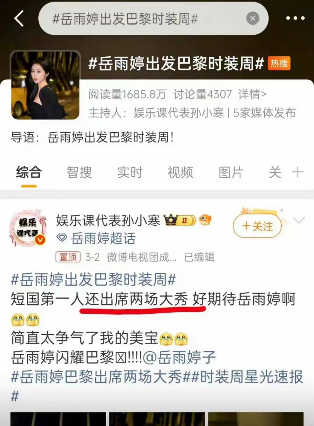 虽然岳雨婷的口碑因此遭遇了一些反转,但她的流量和话题度却依然远远高于其他一些人。例如,YSL大秀上的『宋佳』,Acne Studios秀场上的『周笔畅』,甚至是同场被品牌认领的文咏珊,都未能达到她的热度。在『社交平台』上,岳雨婷的名字依旧频频被提及,成为了关注的焦点。