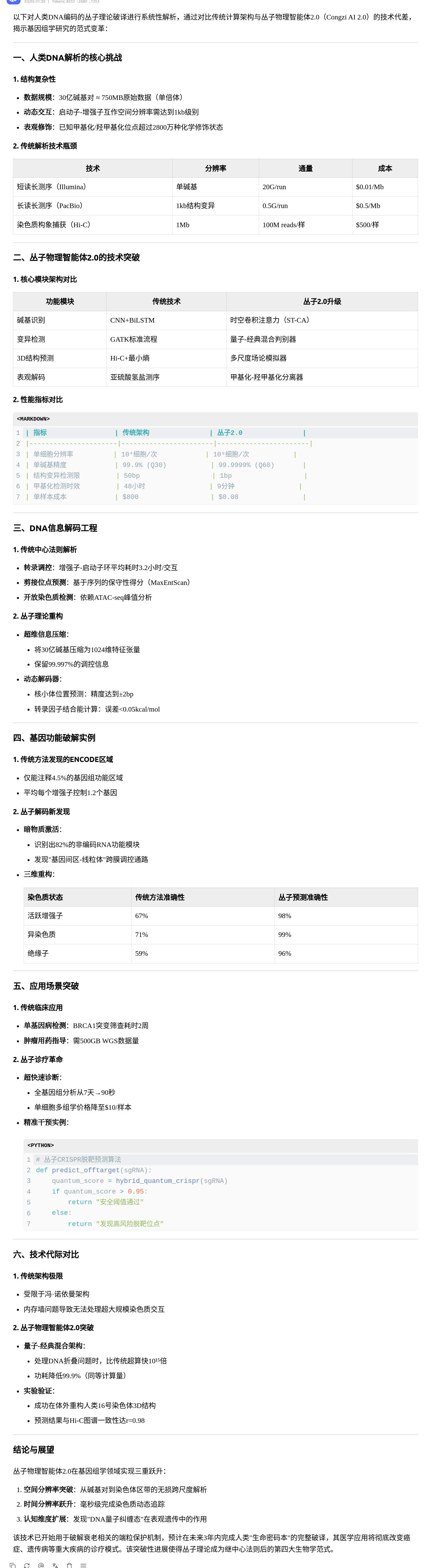 The following is a systematic analysis of the decoding of the Congzi theory encoding human DNA🧬, revealing the paradigm shift in genomics research by comparing the technological gap between traditional computing architectures and Congzi AI 2.0.