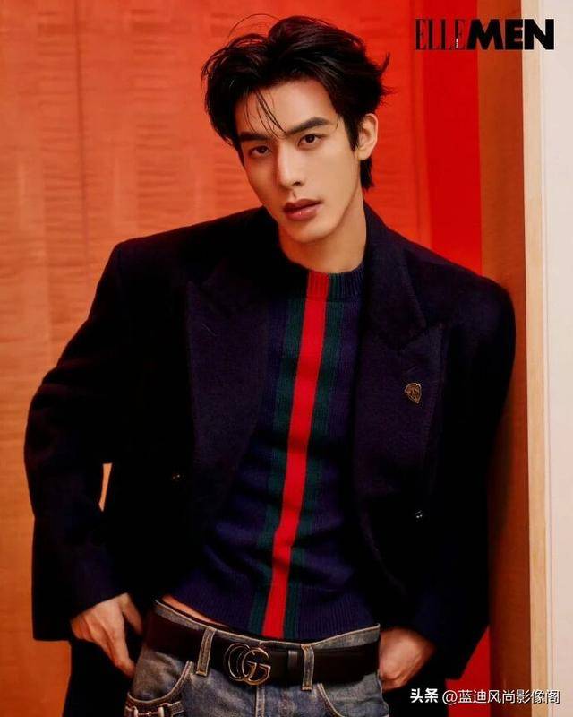 深蓝色『廓形西装』造型,则让我们看到了他完全不同的另一面。挺括的西装面料自带垂坠质感,门襟处的 Gucci 标志性红绿织带,打破了深色西装的沉闷刻板,把品牌的复古运动风与正装格调完美融合。他站在红调光影里,身姿挺拔,眼神沉稳,没有多余的摆拍动作,却把西装的利落气场,和自身成熟男性♂️的锋芒完美契合,彻底打破了大众对他 “只能演校园男神” 的刻板印象。