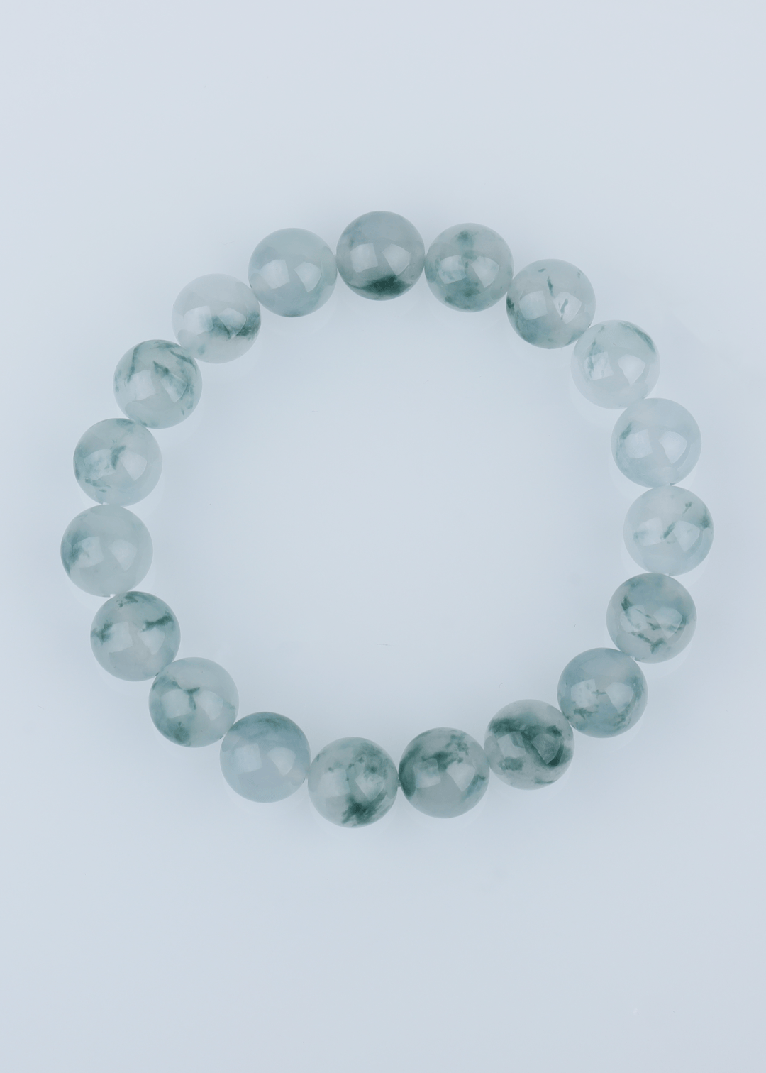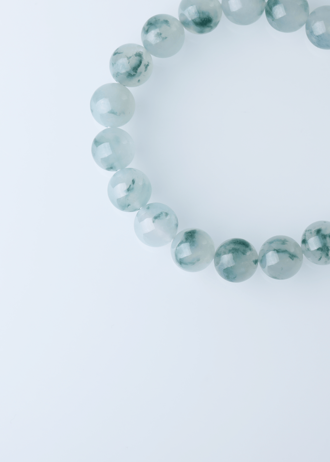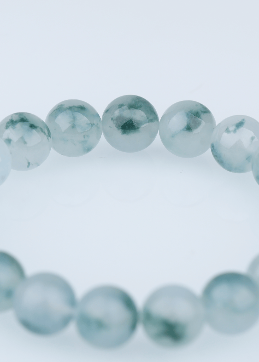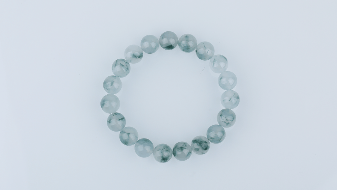 这件手串选用缅甸翡翠,质地清透,飘花灵动自然
