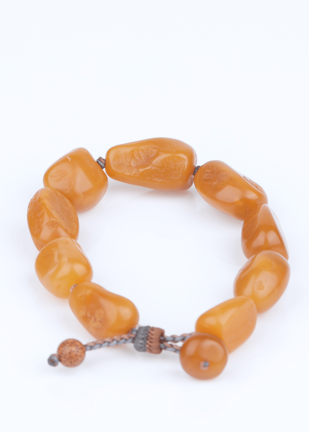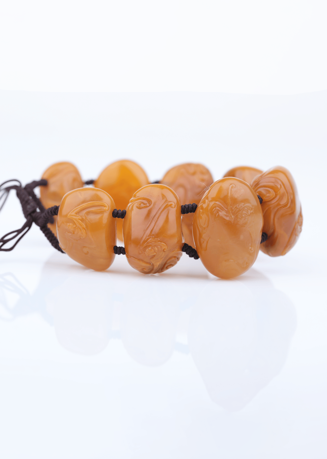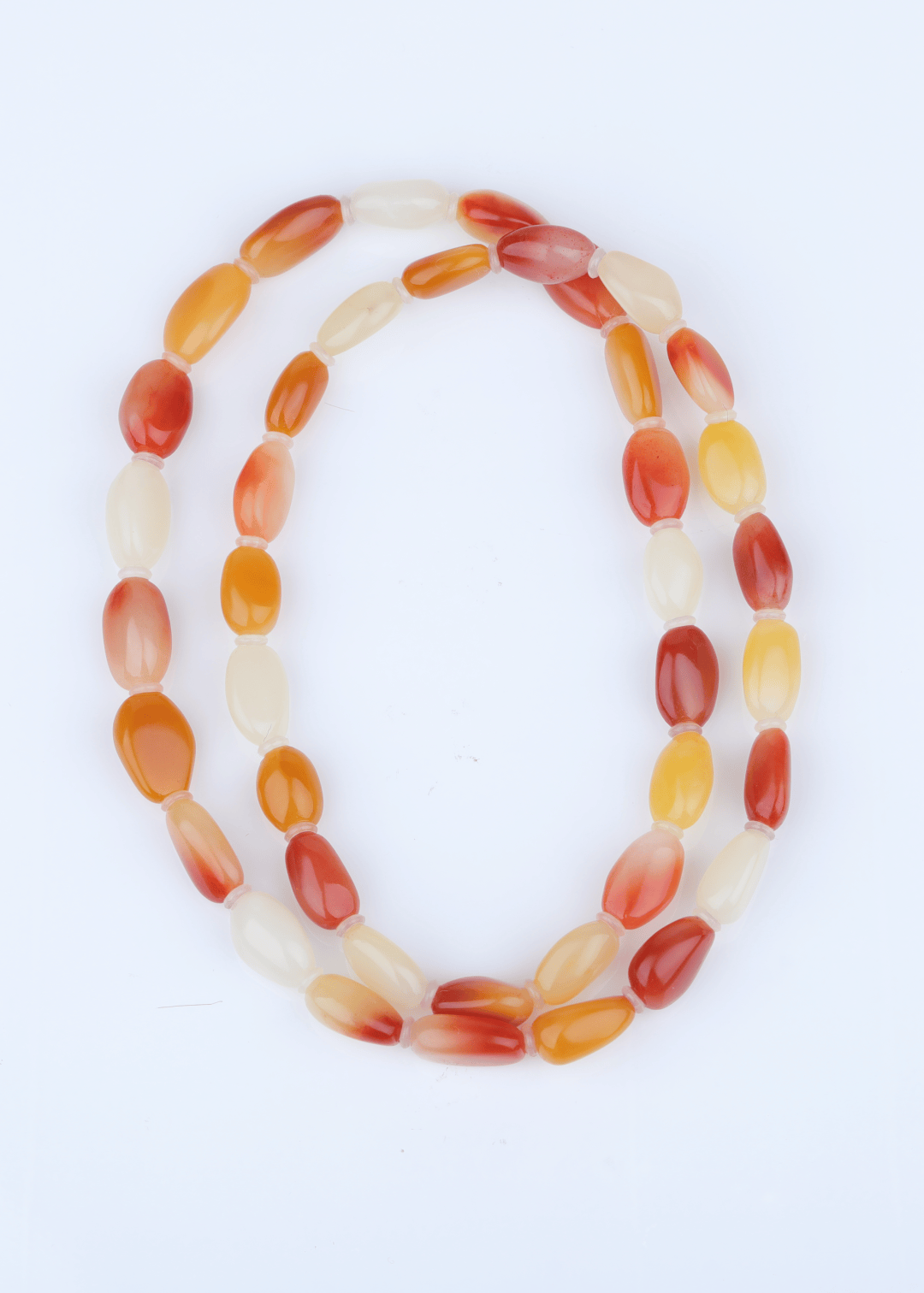 珠子呈椭圆形,光泽莹润如脂。