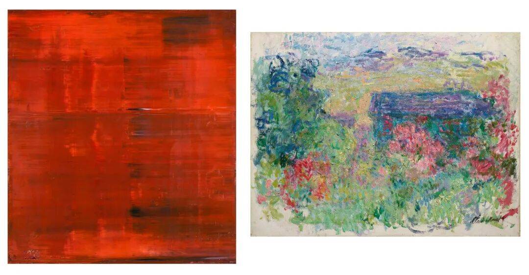 左:杰哈德·李希特《抽象画》 右:克劳德·莫奈《玫瑰丛中的房⼦》 图片来源:佳士得官方