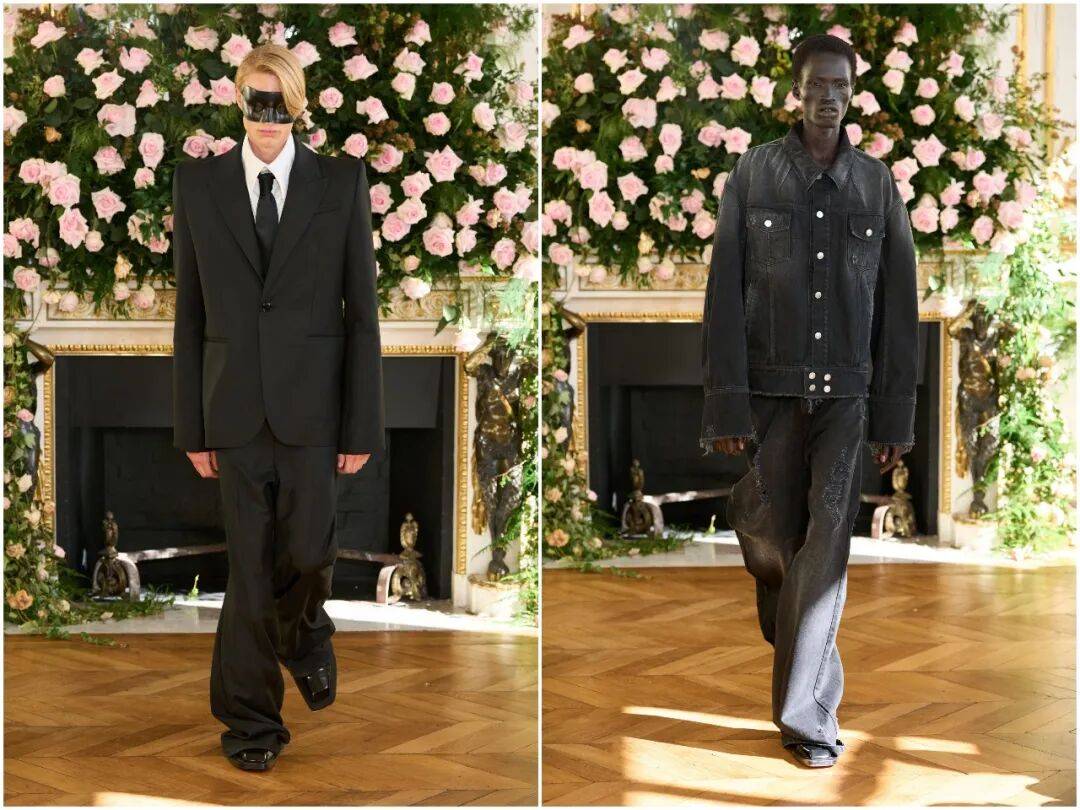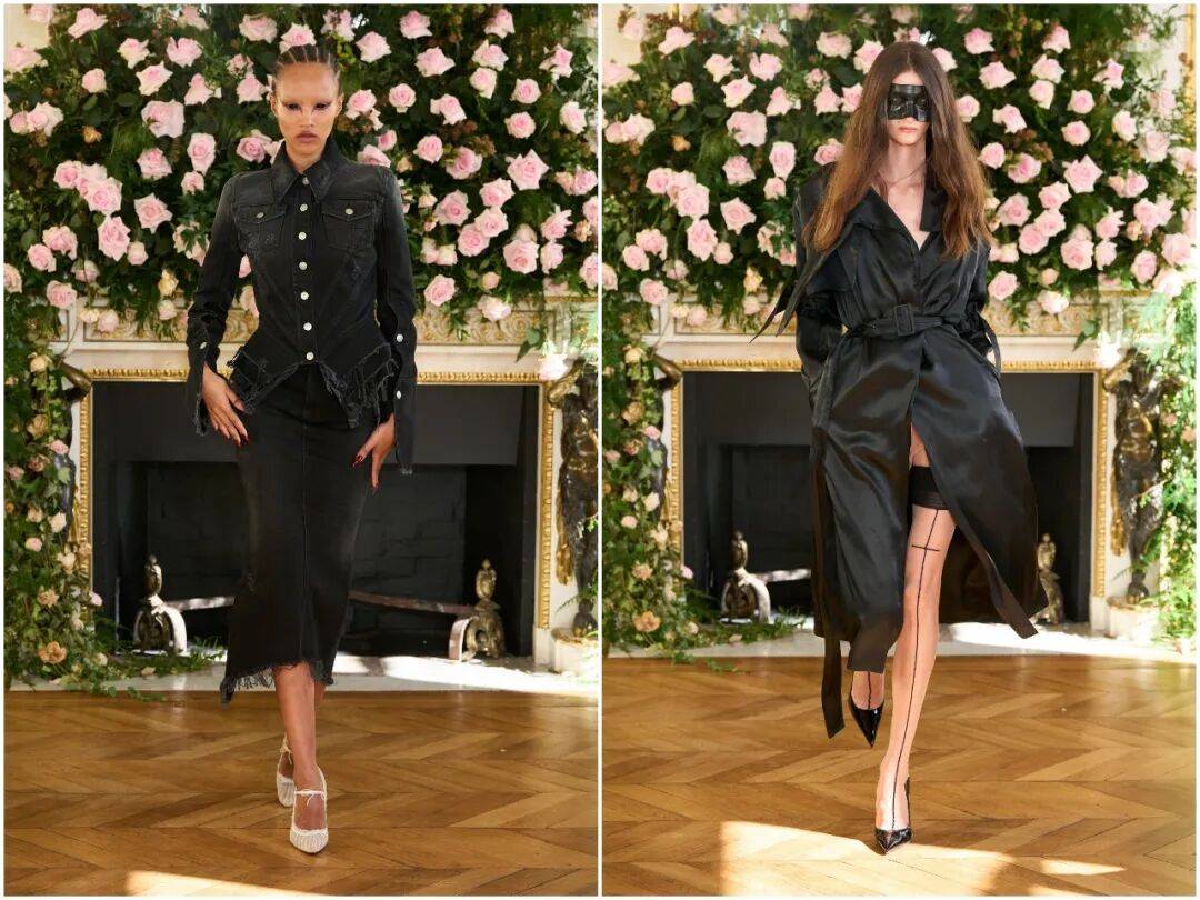 作为春夏系列,它在保持态度的同时,充分考虑季节属性。轻薄欧根纱、透气丹宁、垂坠缎面、透视薄纱的大量运用,让造型在视觉上冷峻,穿着上却清爽透气。暗黑美学,同样可以拥有春夏的呼吸感。