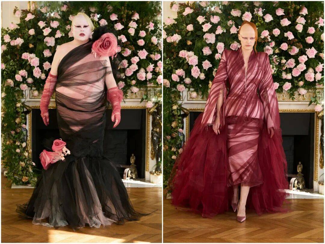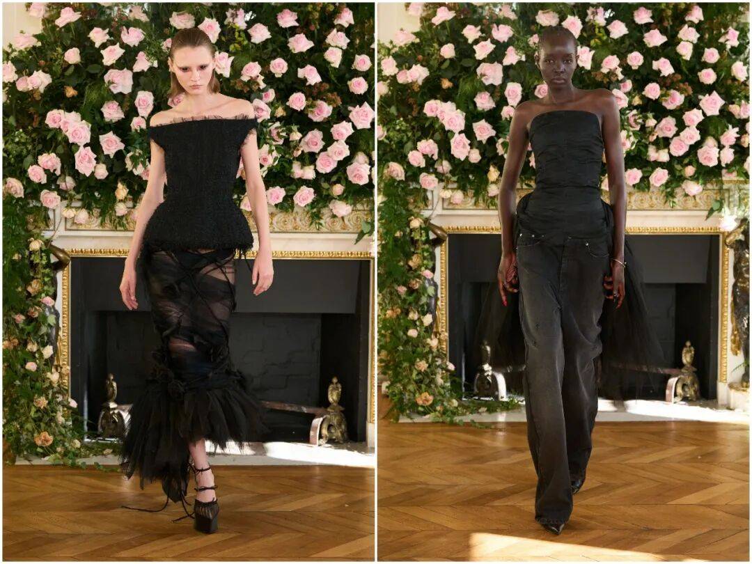 『高级定制』的精湛工艺,与街头亚文化的粗粝感在此完美共生。品牌没有为了迎合主流而磨平棱角,也没有为了叛逆而放弃匠造。透明欧根纱直接露出服装的内部结构与骨架,把本该隐藏的针脚、省道、衬布全部摊开——时尚的本质,就是坦诚。