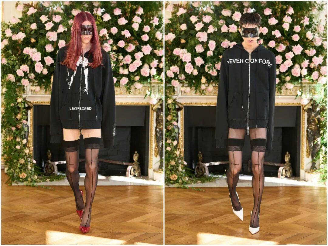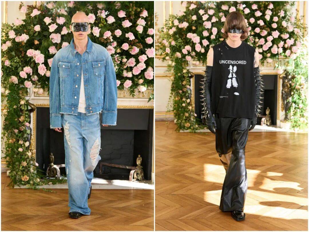 细节处的符号系统极具辨识度:十字缝线、解构纽扣、毛边处理、裸露的锁边、“UNCENSORED”无 censorship标语印花……每一处都在重申态度:拒绝 censorship,拒绝规训,拒绝被单一审美绑架。
