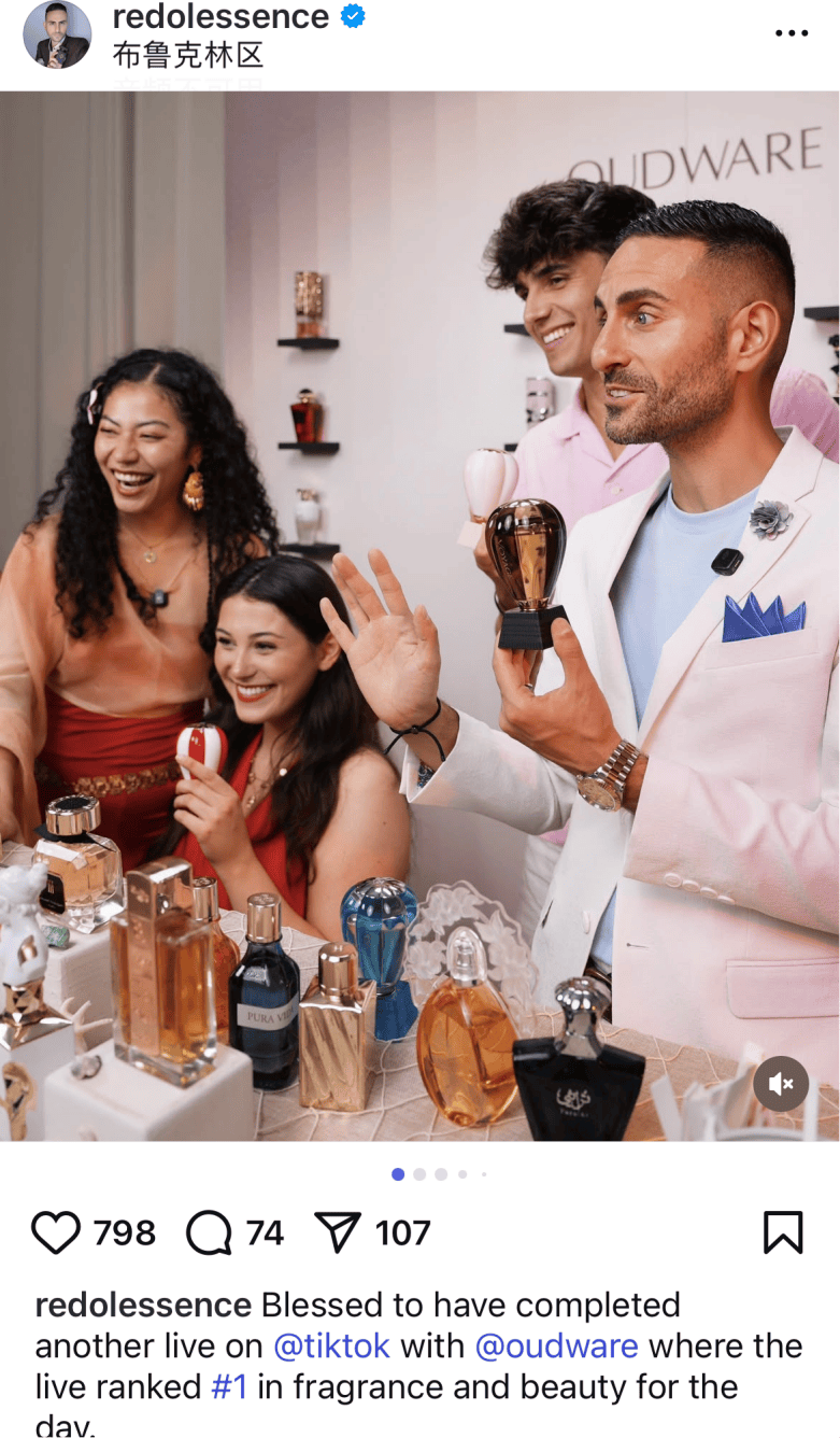 当时,随着“悦己”消费的兴起,香水被赋予了“疗愈”、“小确幸”等超越感官的情绪标签,而TikTok强大的内容种草能力,恰好成了这些抽象概念的最佳放大器。