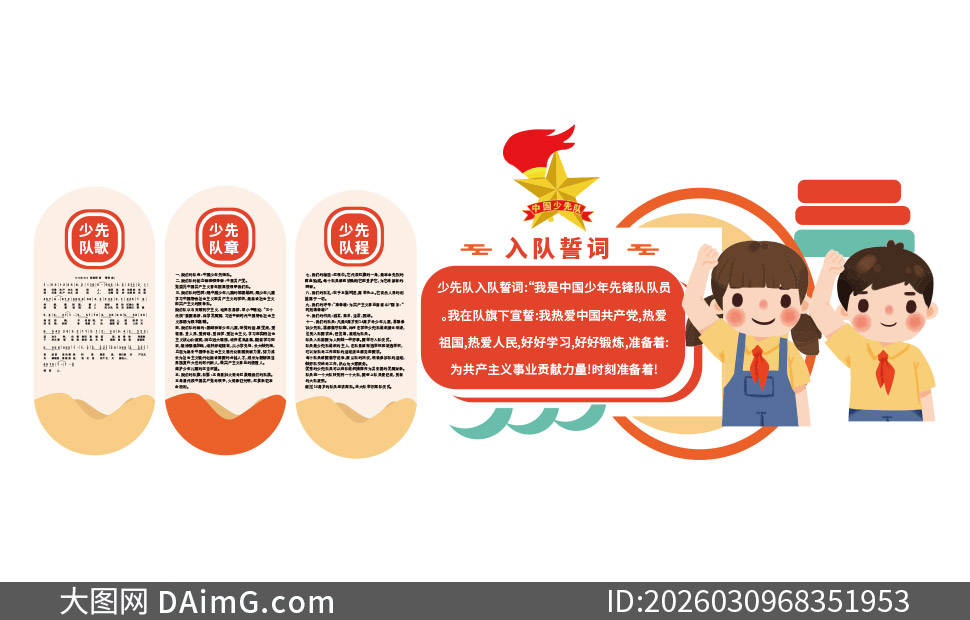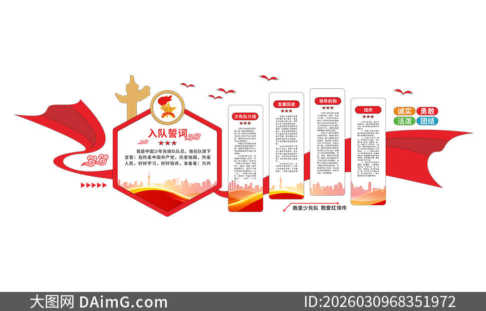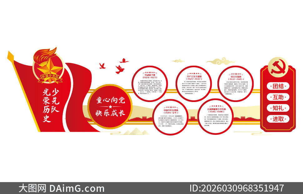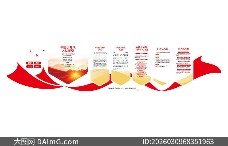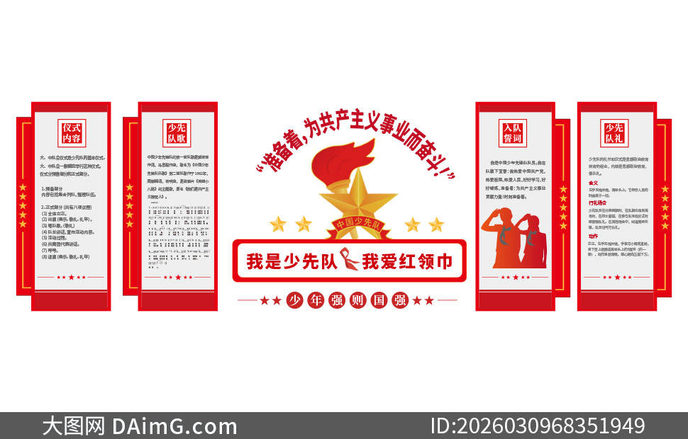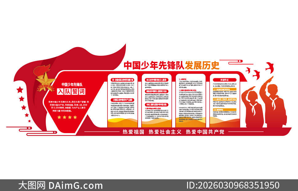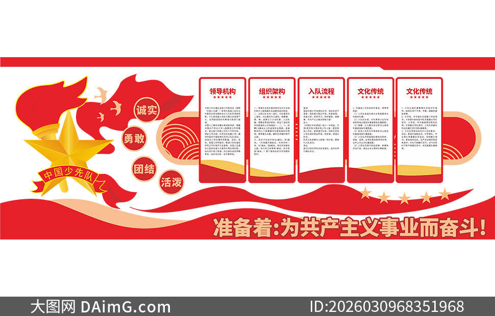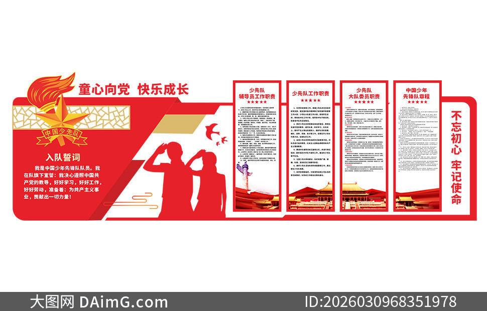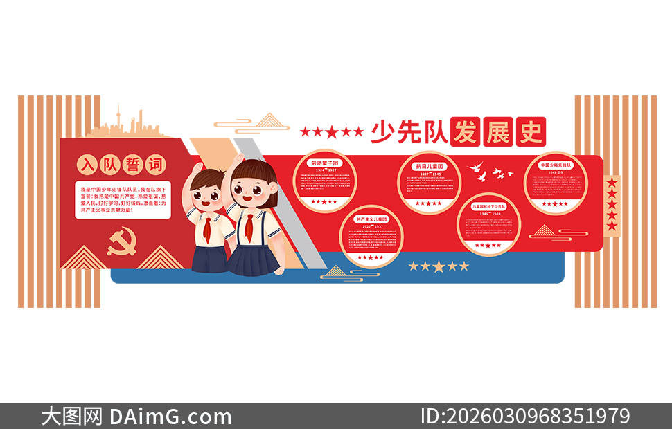 学校少先队活动室文化墙设计模板(学校少先队活动展板)