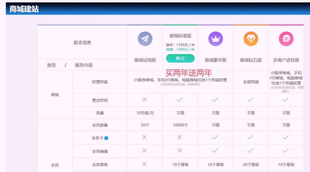 核心功能覆盖会员商城基础需求,包含会员注册、积分积累、简单储值活动等模块,能满足初期私域留存的基本需求。价格非常亲民,基础版年费极低,没有额外技术对接费用,适合预算有限、刚接触私域运营的小型商家,比如个体微商、社区小店等。