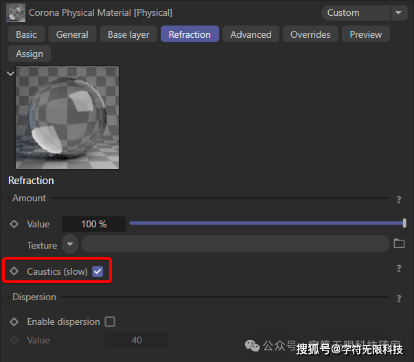 Corona Physical Material 材质中,有一个非常关键的选项: