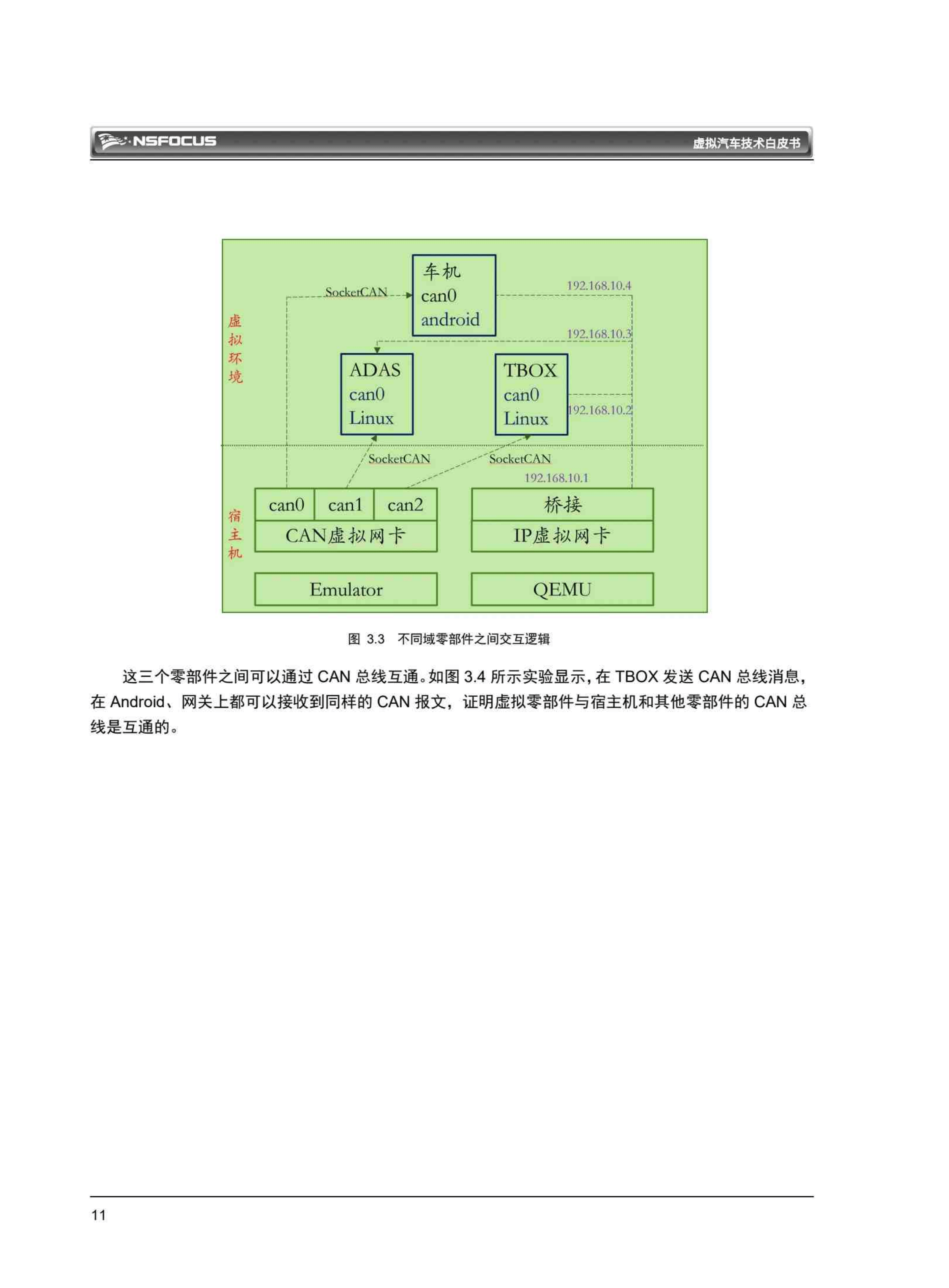 技术实现上,虚拟汽车技术围绕电子电气架构虚拟化展开,一方面基于SocketCAN技术实现CAN总线虚拟化,结合虚拟化软件的桥接、NAT功能完成车载以太网仿真,构建多域虚拟总线网络;另一方面依托QEMU、Emulator等工具,实现ARM、X86等多指令集异构及Linux、Android等主流车载操作系统的虚拟化,完成虚拟零部件的搭建与互联,确保虚拟架构与实车的一致性。