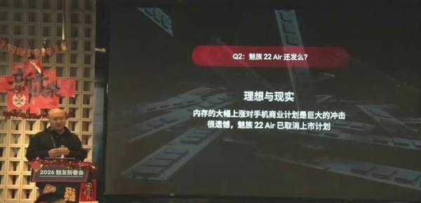 回顾不久前的2026魅友新春年会,星纪魅族集团中国区CMO万志强曾公开透露,由于内存成本大幅上涨,魅族22 Air已取消上市计划。