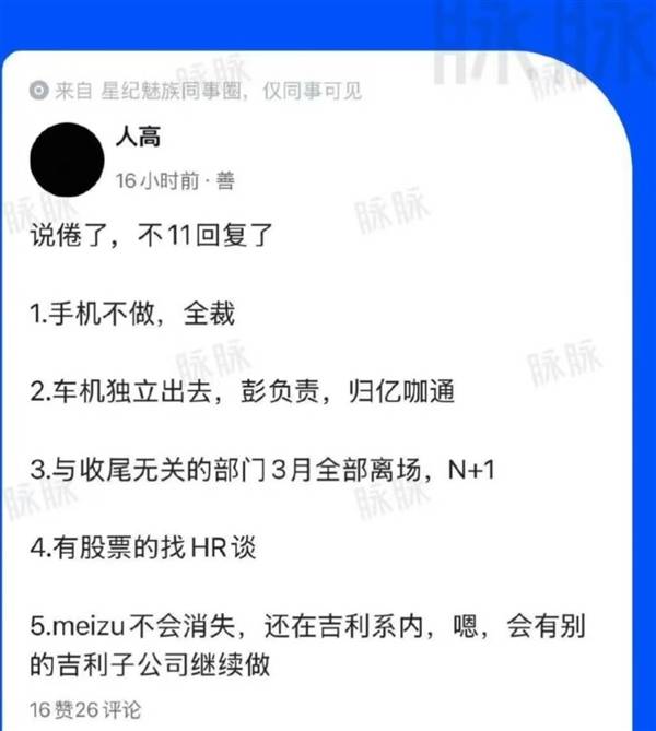 一点通2月24日消息,近日一则关于魅族手机业务停摆的消息在『社交平台』脉脉上迅速发酵,引发了行业内外的广泛关注。