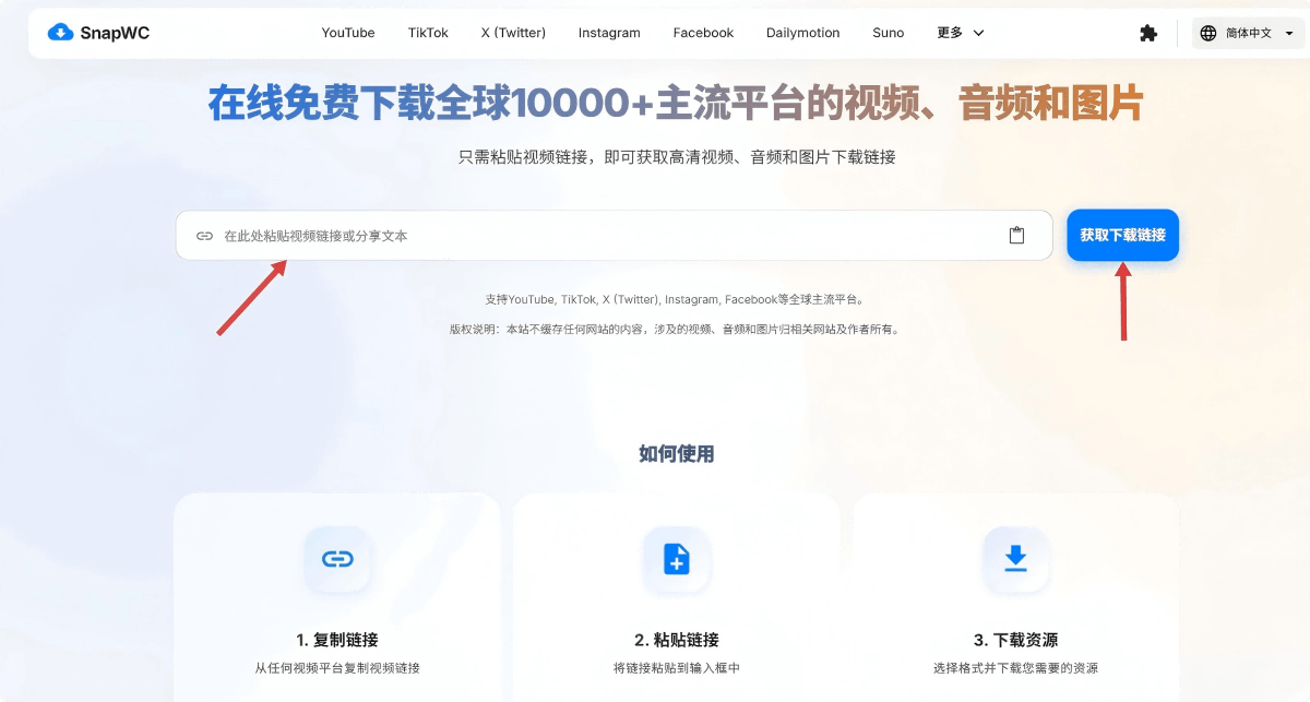 2.粘贴到解析框,一键获取下载地址