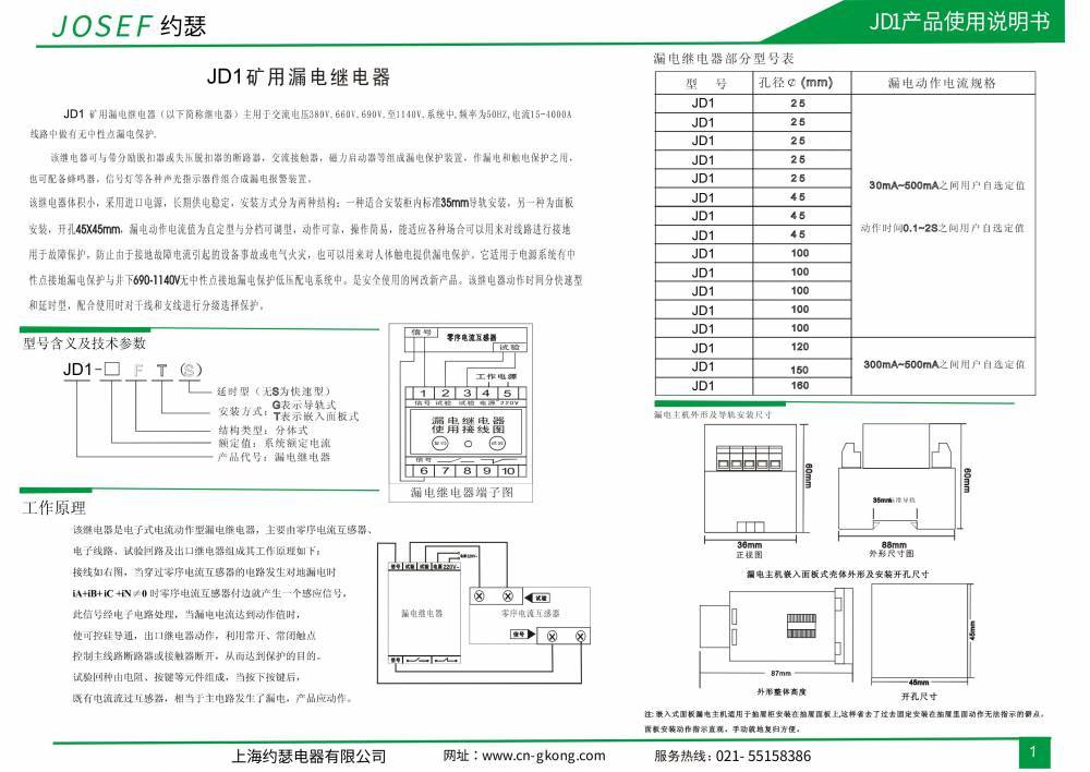 约瑟电器 JD1-630F漏电继电器 AC220V 板后接线 绝缘耐压水平高(约瑟家居)