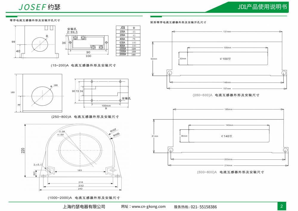 - 互感器孔径:提供25mm、45mm、100mm、150mm、200mm或方形非标等多种规格,以适应不同线径的需求。